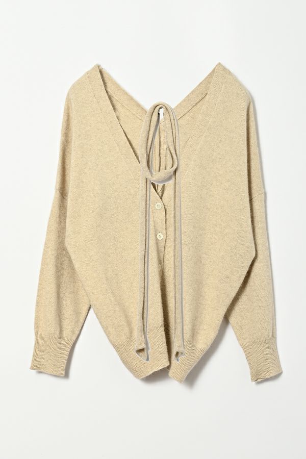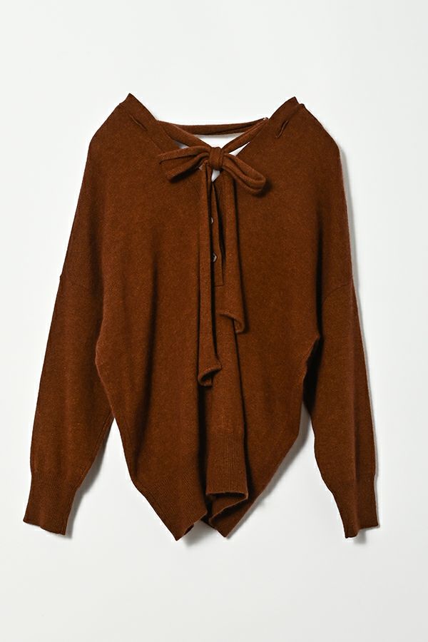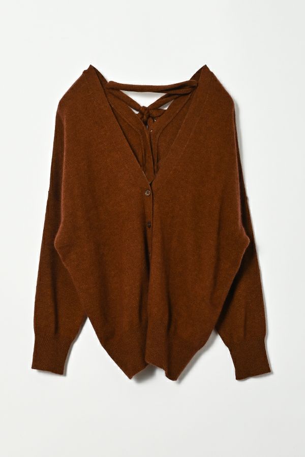 【お届け最短】ラクーン混リボンタイVカーディガン