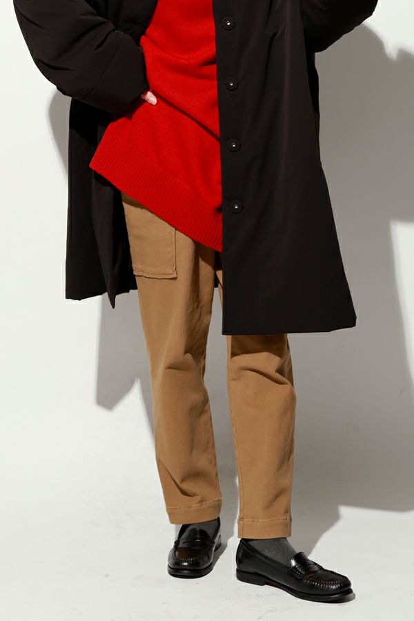 きれい見えと快適さを両立。大人のための美シルエットパンツ。 中肉の裏起毛ストレッチ素材を製品洗いで仕上げ、やわらかな温もりと動きやすさを叶えた一本。フロントはギャザーを無くし、すっきりとしたウエストラインに。 サイドに配した大きめポケットが腰まわりをさりげなくカバーしながら、視線を引き上げることで美しいバランスに整えてくれます。 裾に向かって細くなるテーパードシルエットが、脚を長く、ほっそりと演出。 ストレッチ性に優れた素材と総ゴムウエスト仕様で、ストレスフリーな穿き心地なのに、見た目はシャープ。リラックス感ときちんと感を両立した、デイリーに頼れる大人パンツです。 ●裏起毛ストレッチジャケット(25238-6627M-R)とセットアップ可