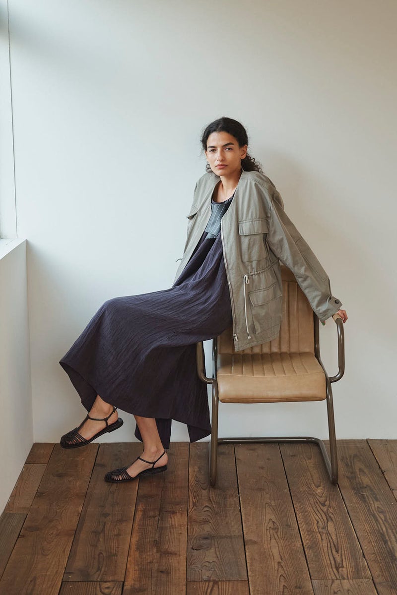 フラットサンダルでリラクシーに、シアーブラウスと合わせればオケージョンスタイルにも対応する、大人のための万能ワンピースです。