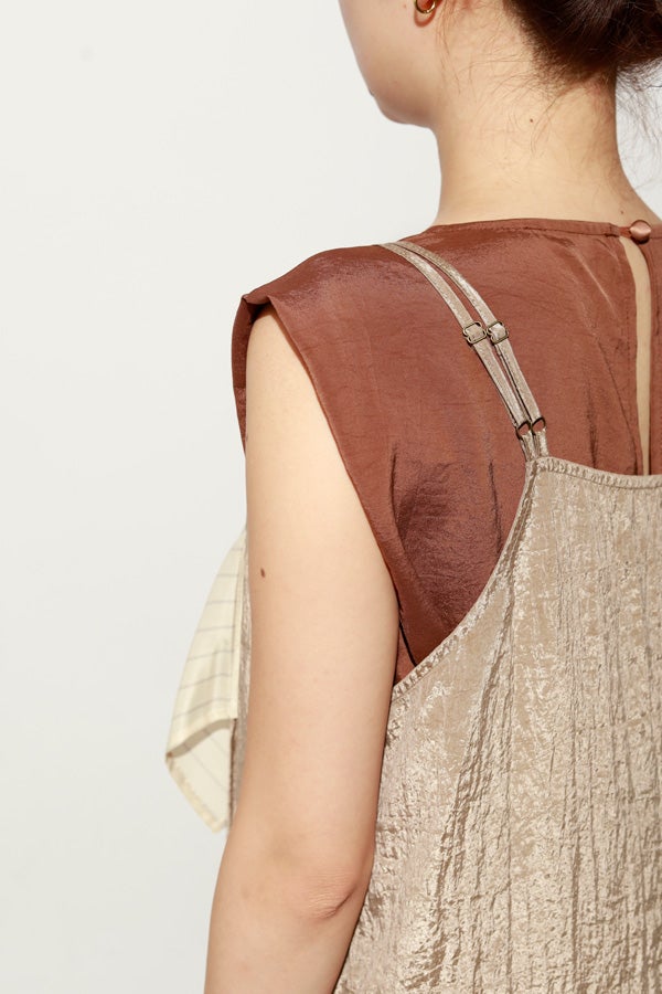 華奢な肩ひもが女性らしさを惹き立てるアイテム。ストラップは長さ調整可能で、自分にぴったりのシルエットにアレンジできます。フロントは二枚仕立てのデザインで、歩くたびに軽やかに揺れる立体感が生まれ、シンプルながら表情豊かに装います。