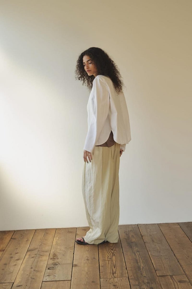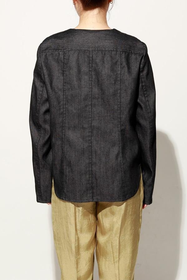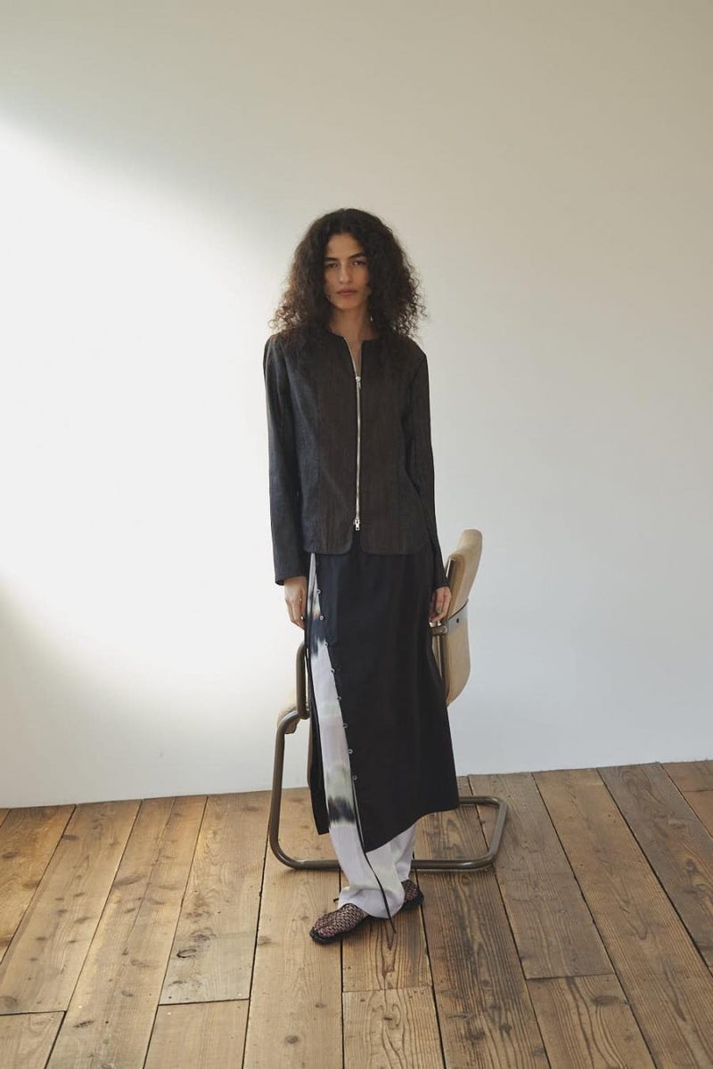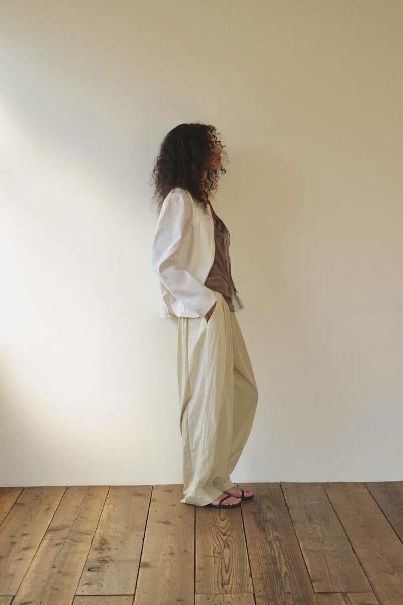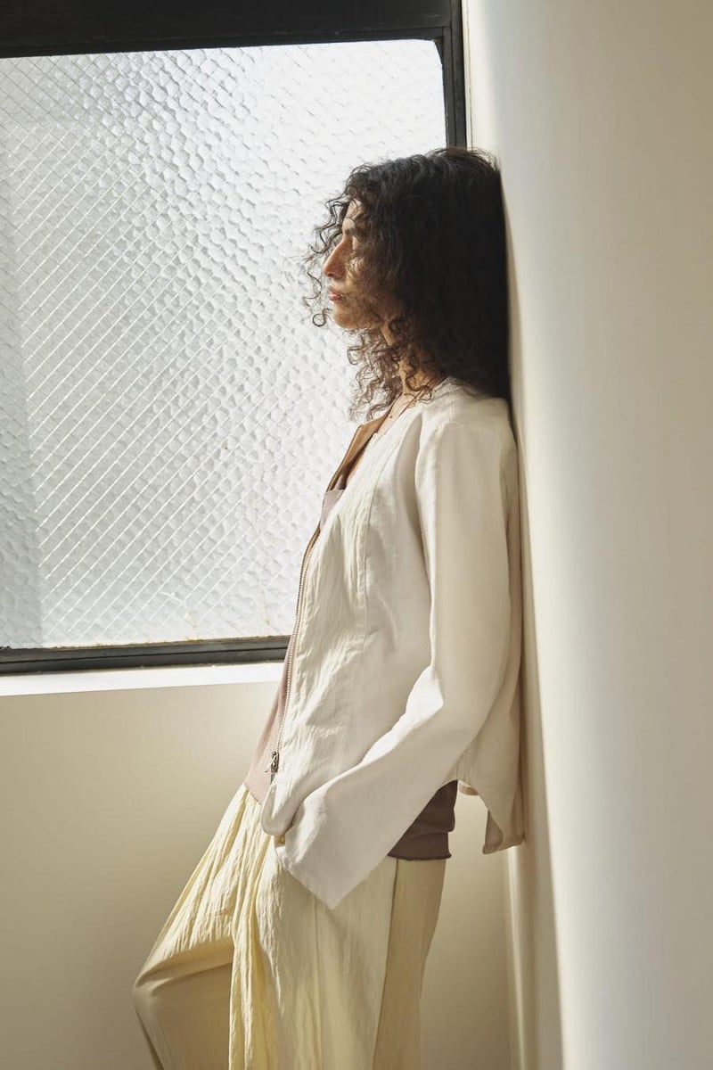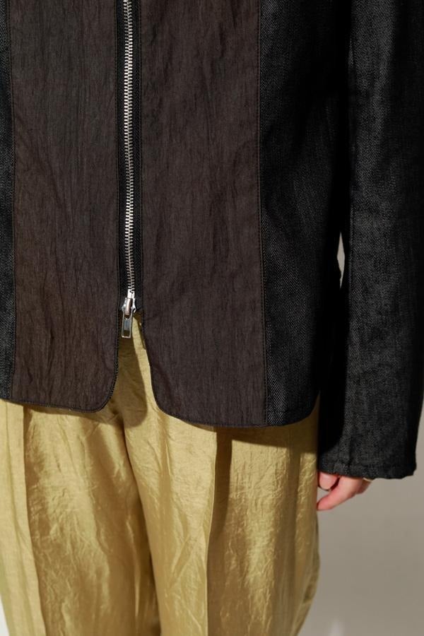 動きやすさと品格を両立する、異素材コンビが映えるブルゾン。 綿麻ならではのナチュラルな風合いに、異素材の切り替えを効かせたアイテム。 縦ラインを強調するデザインがシルエットをすっきり見せ、軽やかにスタイルアップを叶えます。 伸縮性のある生地が動きやすさを引き立て、見た目のシャープさに反して快適な着心地。さらに製品加工でバイオウォッシュを施し、ほどよいユーズド感と奥行きのある表情をプラスしました。 着るほどに風合いが増し、愛着の湧く一枚に仕上がっています。 デニムでラフにまとめれば洗練されたカジュアルに、タイトスカートやスラックスならオフィスカジュアルに早変わり。 コンパクトな丈感はワイドパンツやボリュームスカートとも好相性で、幅広いシーンで着回せます。