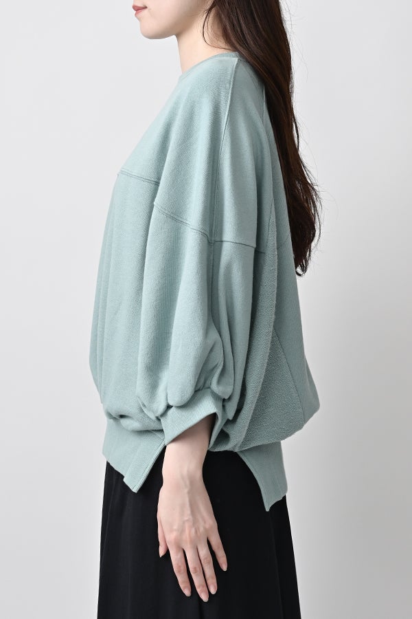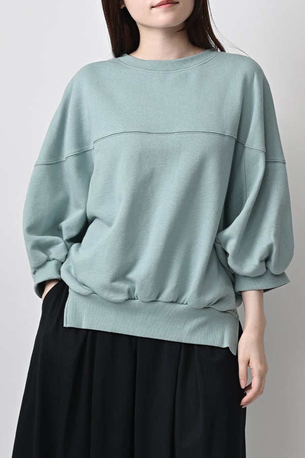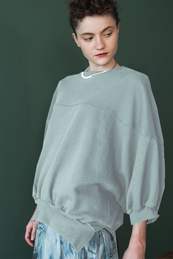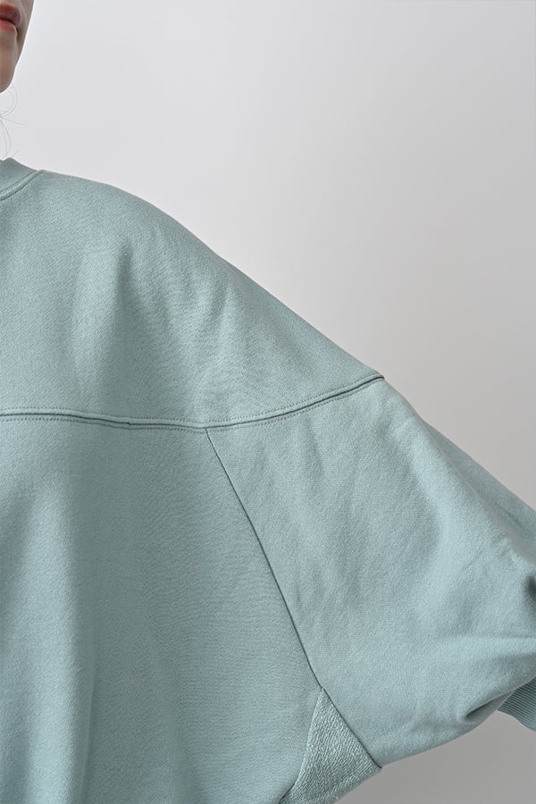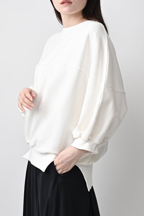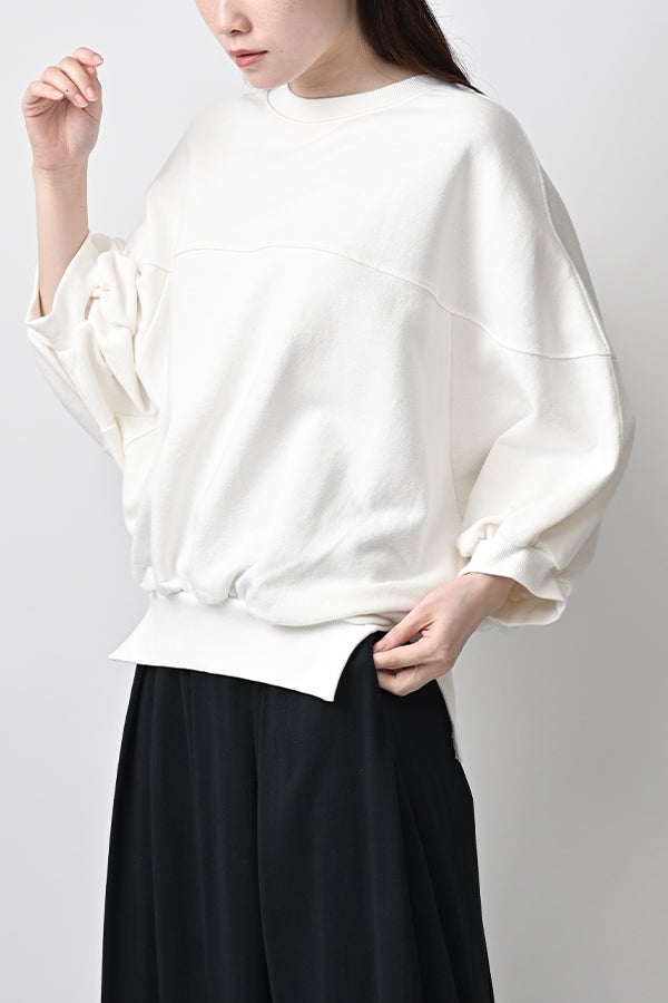 ストンと落ちる肩ラインが女らしい、ショート裏毛プルオーバー。 ボリューム感のある裏毛素材を使用。 ワイドなシルエットで肩をストンと落とすことで、女性らしい柔らかな肩周りのラインが完成します。 クルーネックでスポーティーな印象ながら、短め丈がボトムとのバランスを整え、スタイルアップも叶えるデザインです。 ハイウエストパンツやマキシスカートと合わせて、ショート丈を活かしたコーディネートはもちろん、旬の光沢ボトムと合わせれば大人のきれいめな着こなしもおすすめです。 カジュアルさと洗練を両立した、大人にぴったりの一枚です。