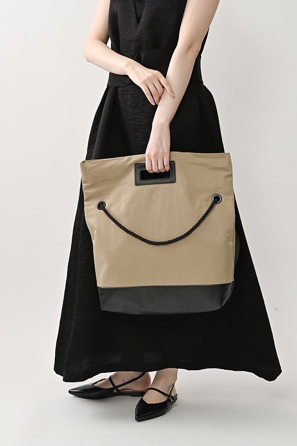 ミニマルなデザインとナイロン特有の軽やかさが、大人の装いに自然と馴染む、頼れるデイリーバッグです。