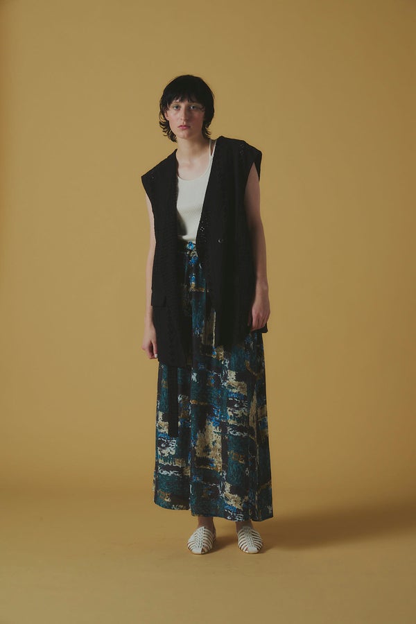 クロップド丈のリブタンクをインに合わせて抜け感をプラス。足元は厚みのあるサンダルでバランスを合わせれば、軽やかさの中にモードなニュアンスが宿り、縦ラインを強調したスタイルアップ効果も。シンプルな装いに重ねるだけで、クリーンさと華やぎを纏える大人のための一枚。