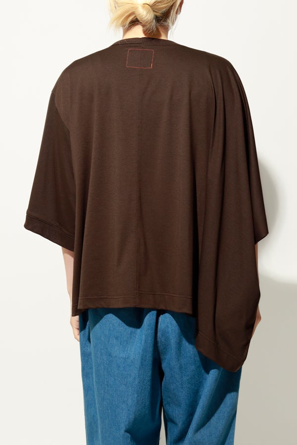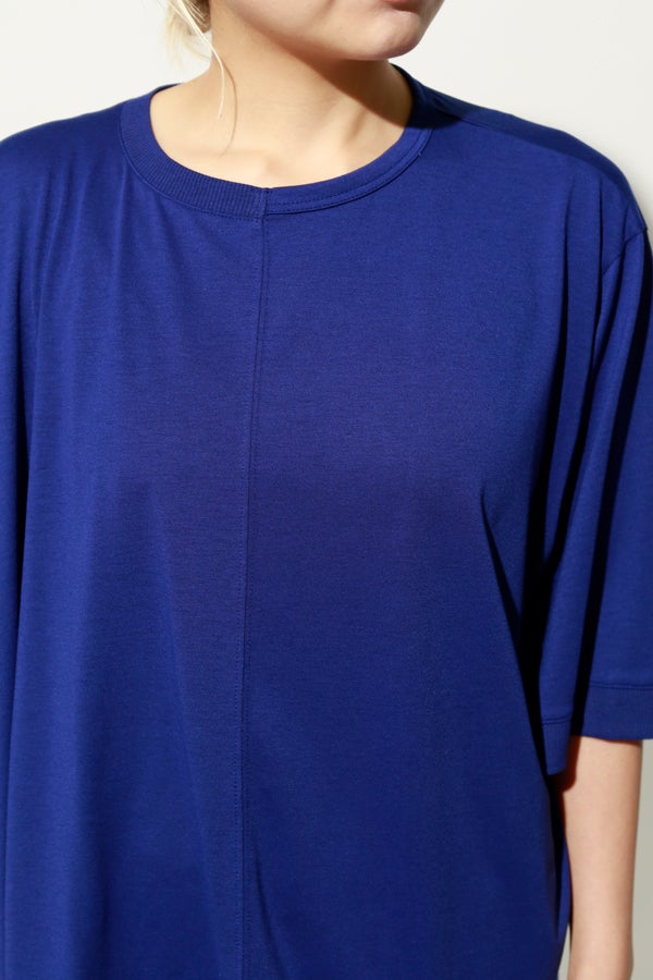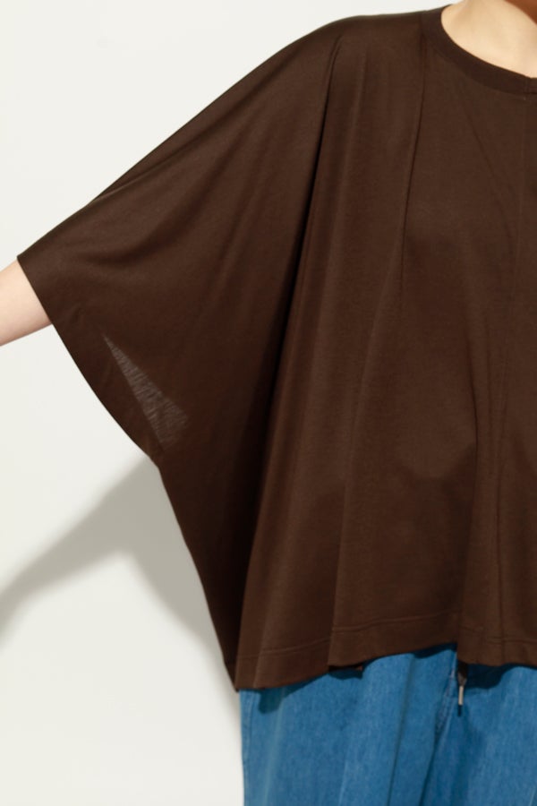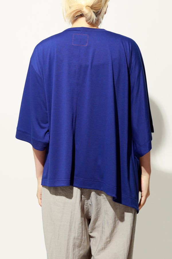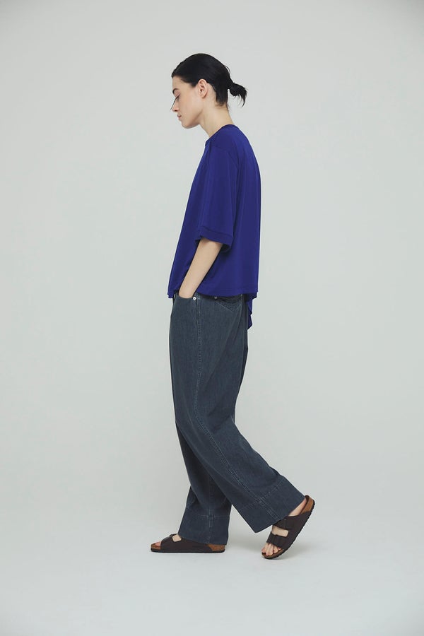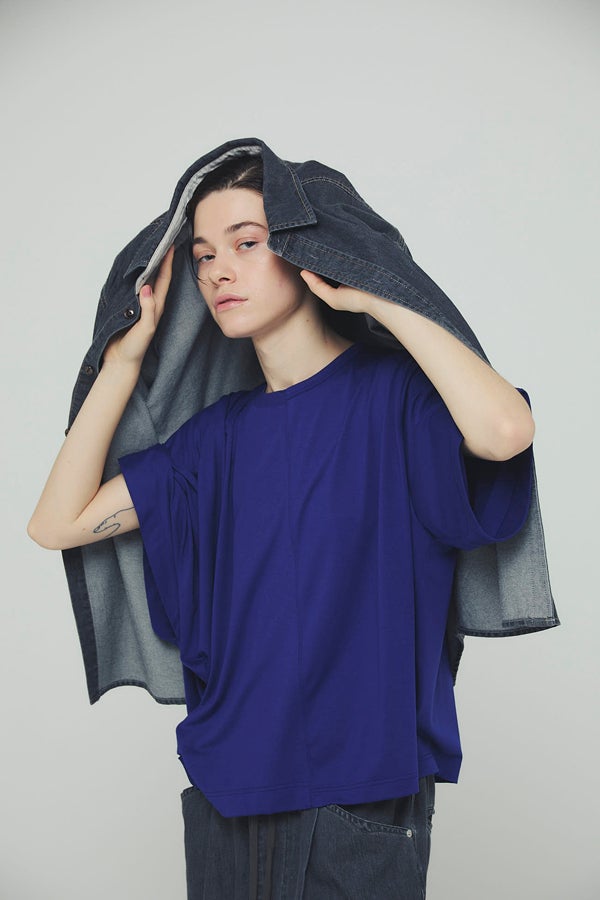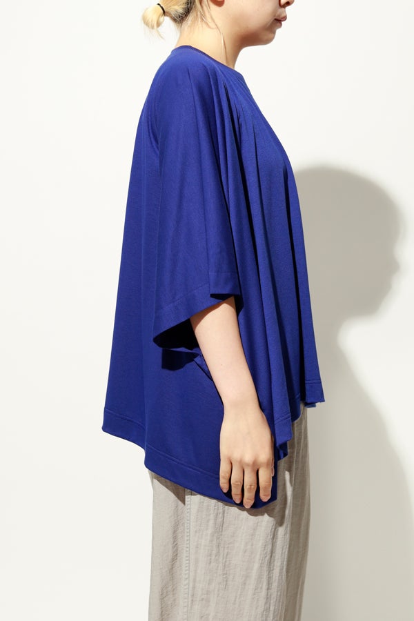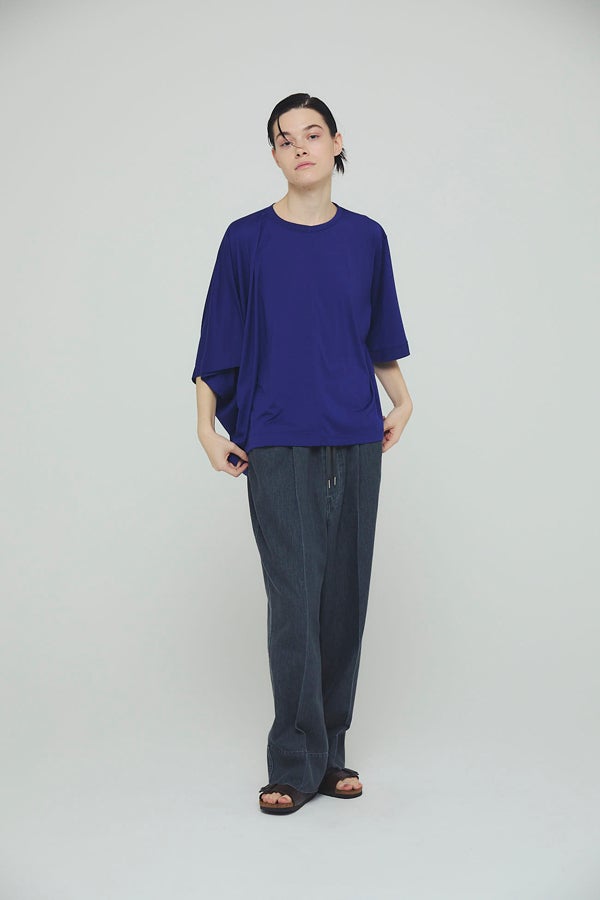 中心のハギによるデザインの切り替えが、着るだけでスタイリングのポイントになり、綺麗なドレープが女性らしいシルエットを演出。1枚で日常のコーディネートを格上げする、大人モードなプルオーバーです。