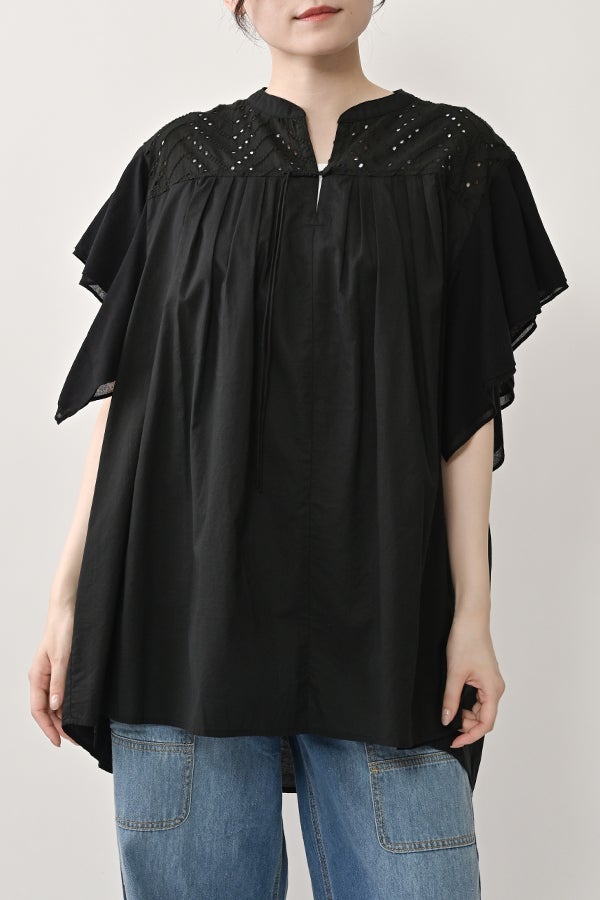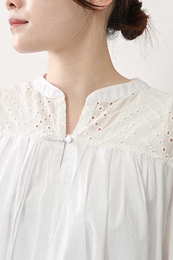 身頃にはランダムタックを入れ、立体感と自然なゆとりをプラス。着た瞬間にふわりと動きが出て、装い全体が軽やかに仕上がるデザインです。腰周りをしっかりカバーする着丈は、上品さと安心感を同時に叶えてくれる一枚。
