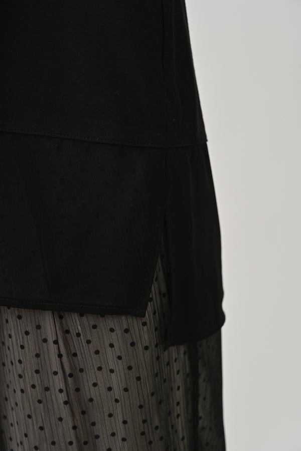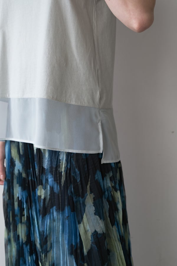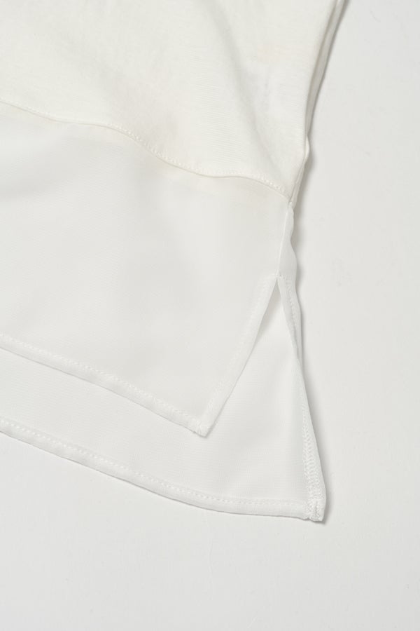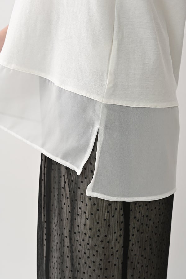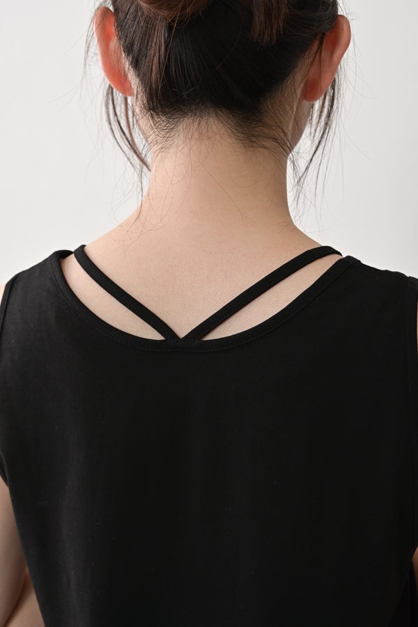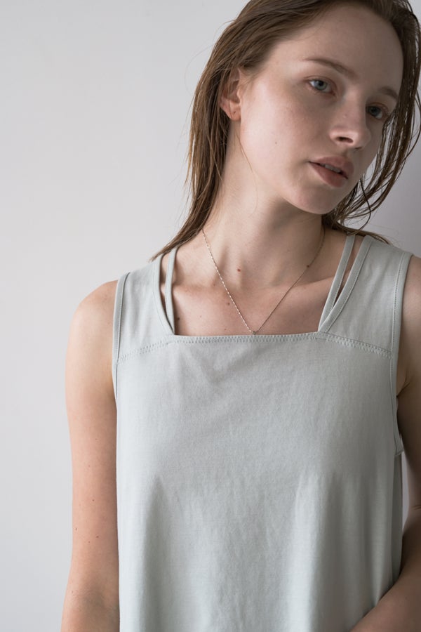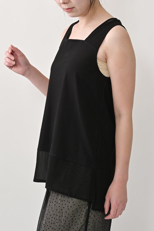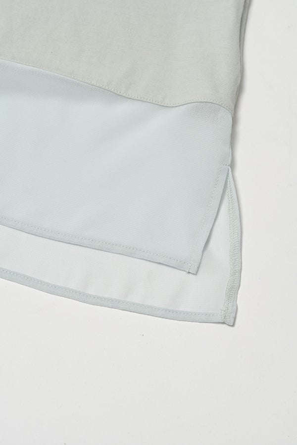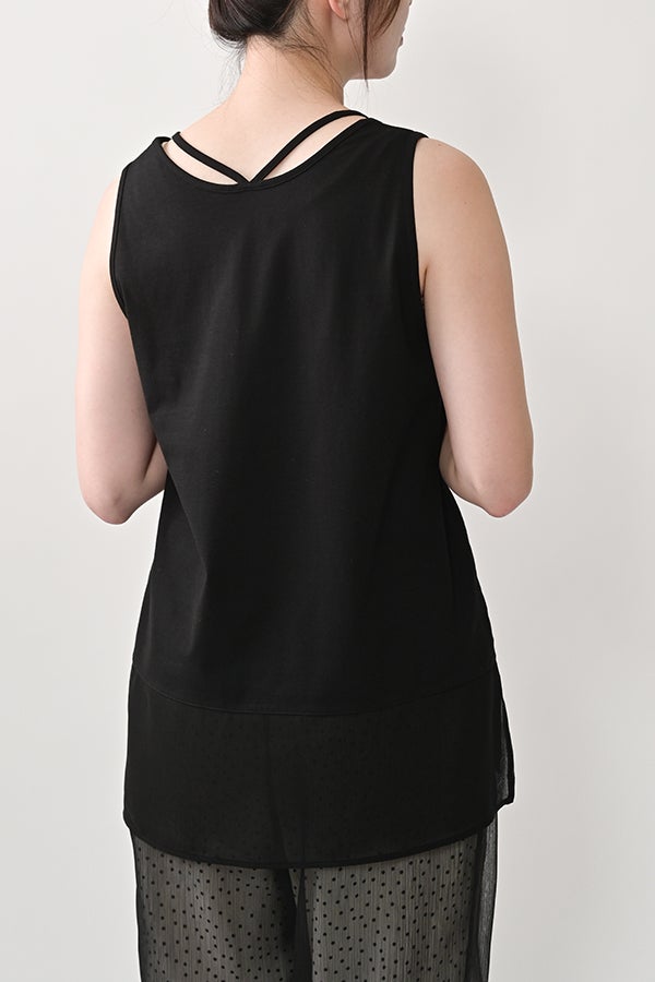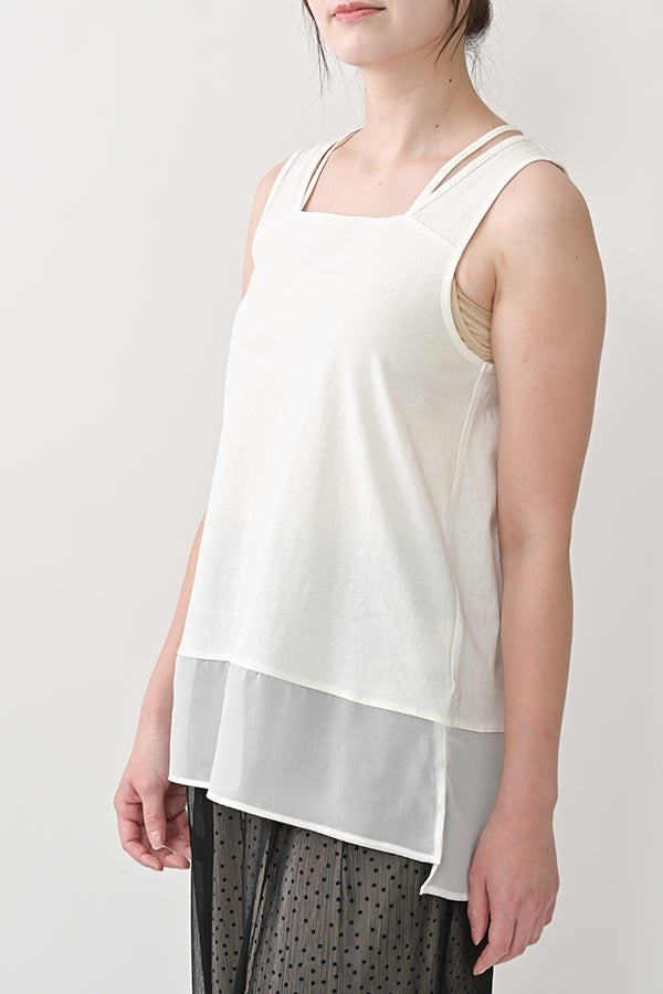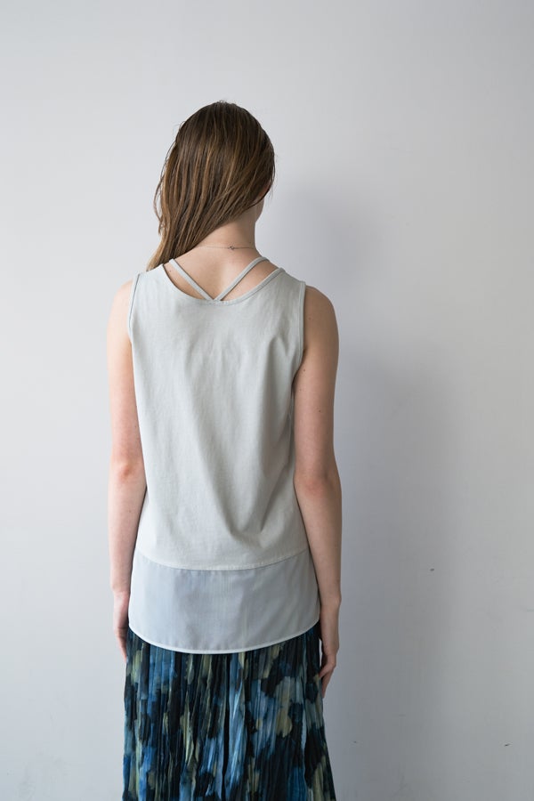 重ねて映える、夏の華奢見せタンク。 マルチに活躍する夏のタンクトップは、ネックに添えた細いテープがさりげないアクセントとなり、レイヤードに品のあるニュアンスをプラス。裾にはシアーな布帛素材をドッキングし、軽さと奥行きを持たせたデザインが、重ねるだけでこなれたバランスをつくります。 大きく開いたトップスのインナーとして覗くテープは、首元を華奢に見せながら洒落感をひとさじ。きれいめの羽織りとデニムで外せば、大人の抜けを感じるスタイルに。セットアップに合わせれば、ちょっとしたお出かけや学校行事にも対応できる万能さ。夏の着こなしに美しいレイヤードをもたらす一枚です。 ●COOLローレルの特徴 接触冷感加工、美しい光沢感、洗濯を繰り返しても毛羽立ちが少ない ●日本製