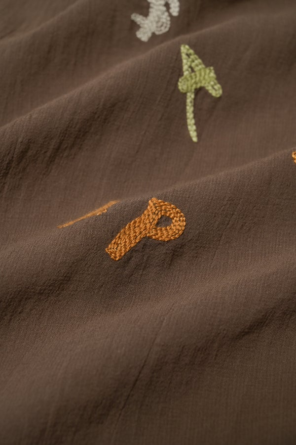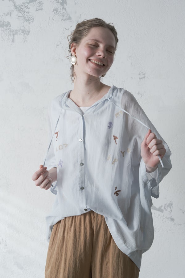 軽やかに羽織る、大人のアルファベット刺繍シャツ。