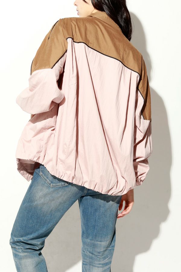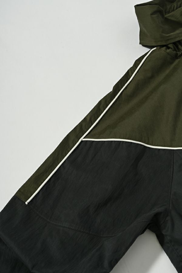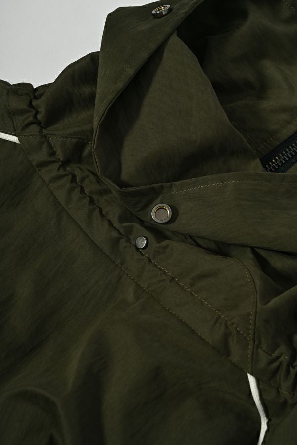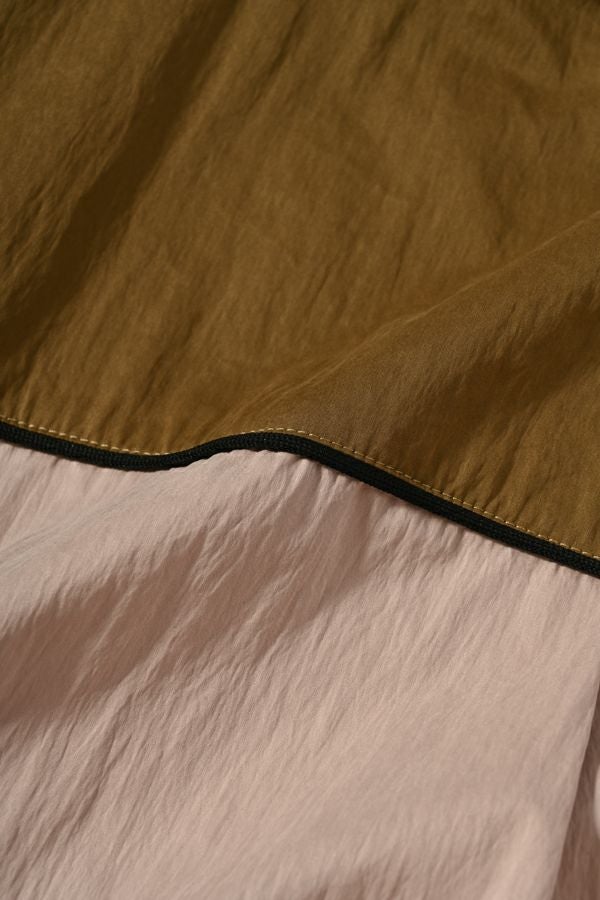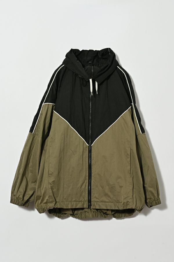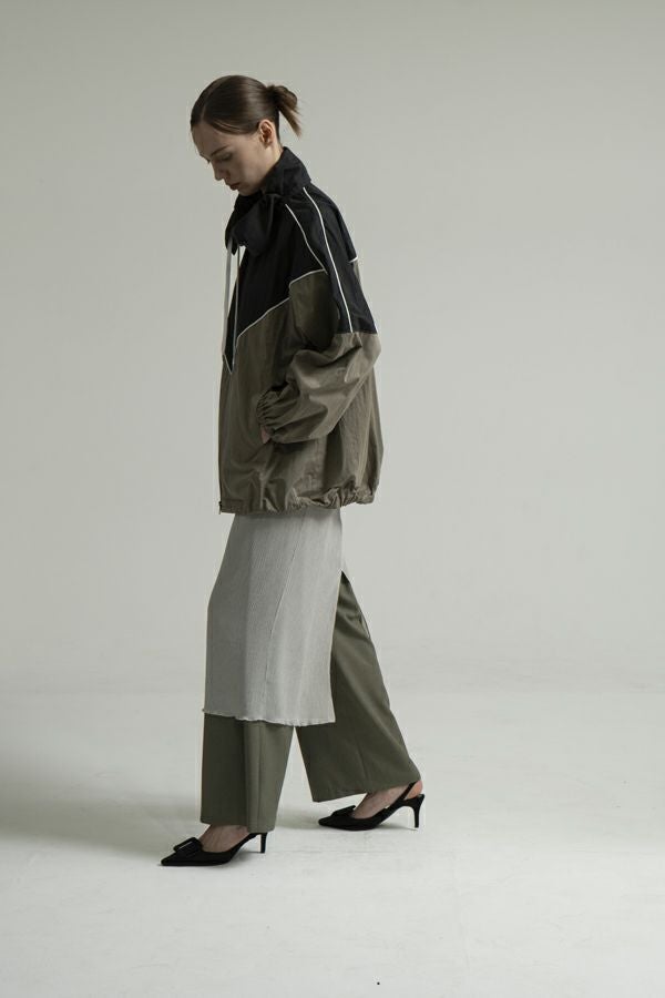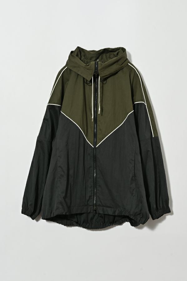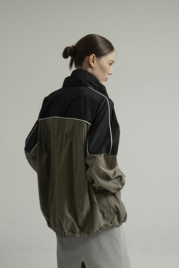 スポーティー&スタイリッシュなデザイン、ナイロンブロッキングブルゾン。 軽くて丈夫なナイロン素材を使用したこのブルゾンは、持ち運びにも便利で、乾きも早いので頻繁にお洗濯しても安心。季節の変わり目に最適なアイテムです。 ブロッキングによるカラーコンビネーションがアクセントとなり、スタイリッシュな印象を与えます。 トレンドを押さえた高さのある衿は、折り返したりコードで絞ったりとアレンジ可能。ダブルジップでさらにオリジナルな着こなしを楽しめます。スポーティーな要素にデザイン性が加わり、洗練されたアーバンカジュアルなスタイリングが完成します。スカート合わせで女性らしい装いを楽しむこともできますし、ワイドパンツやオールインワンなどアクティブなコーディネートの際には、小物やアクセサリーをうまく取り入れることで、より魅力的に仕上がります。