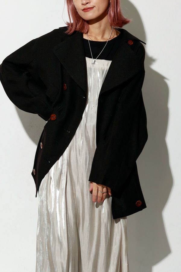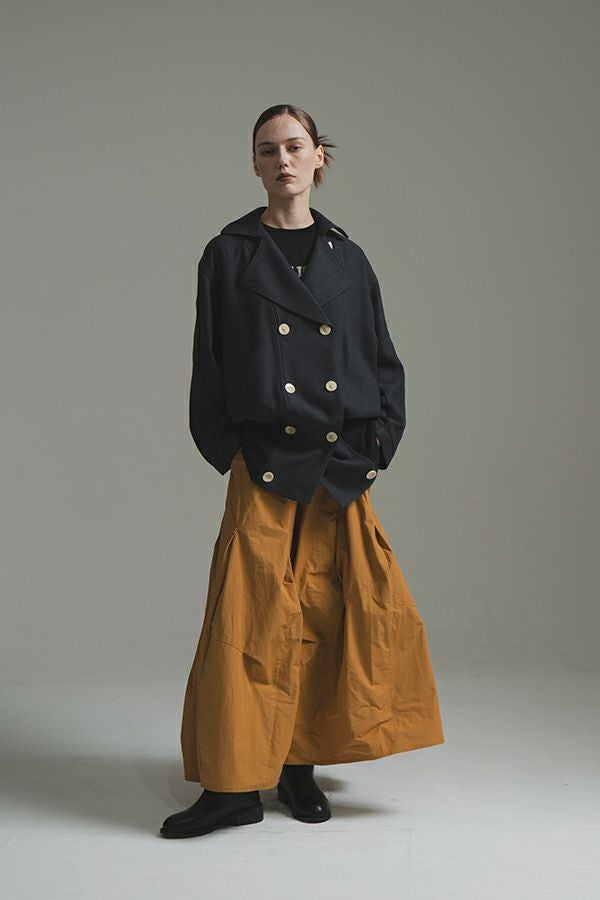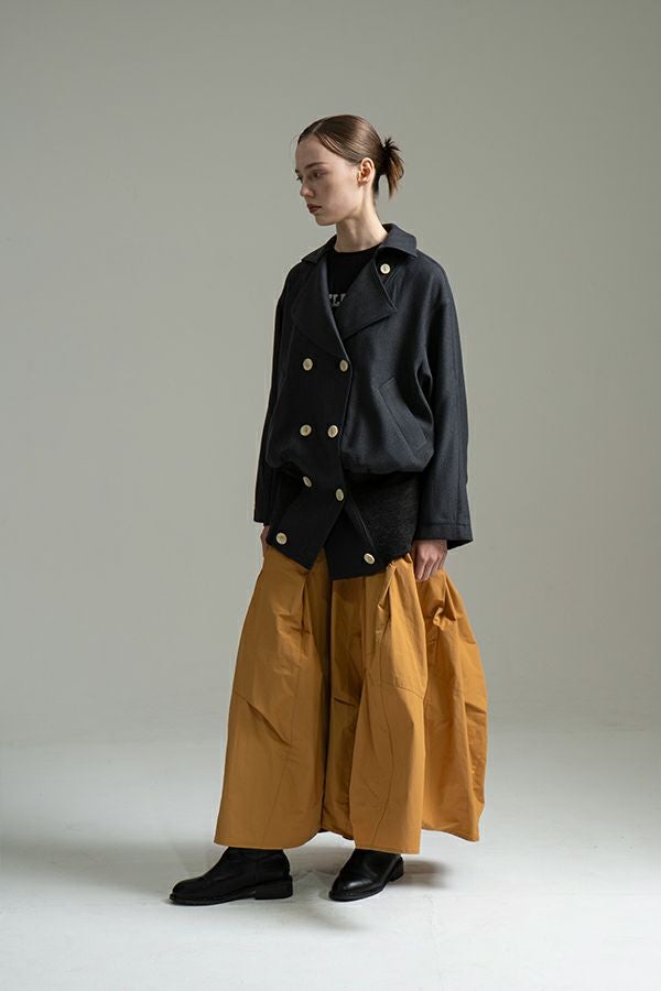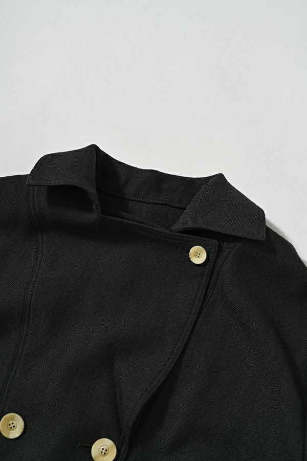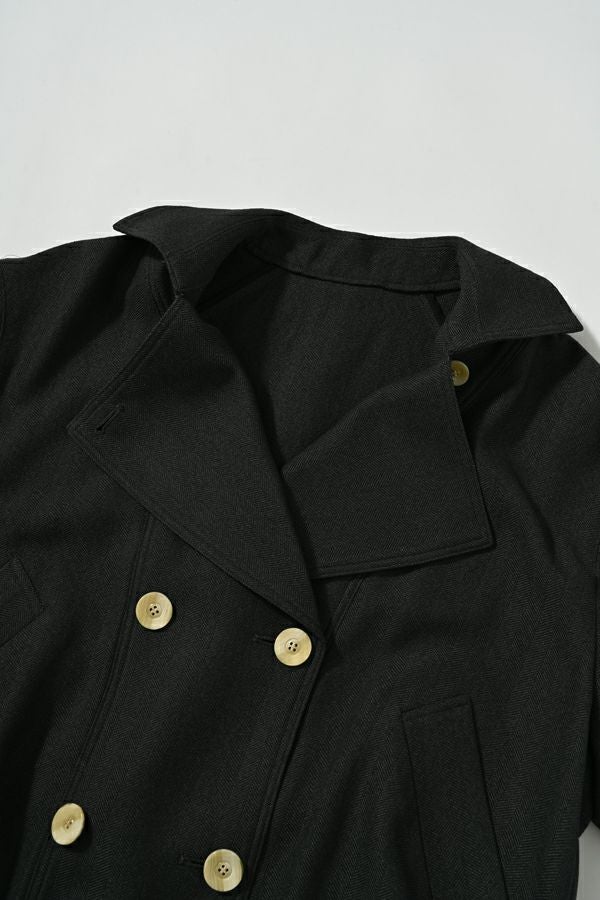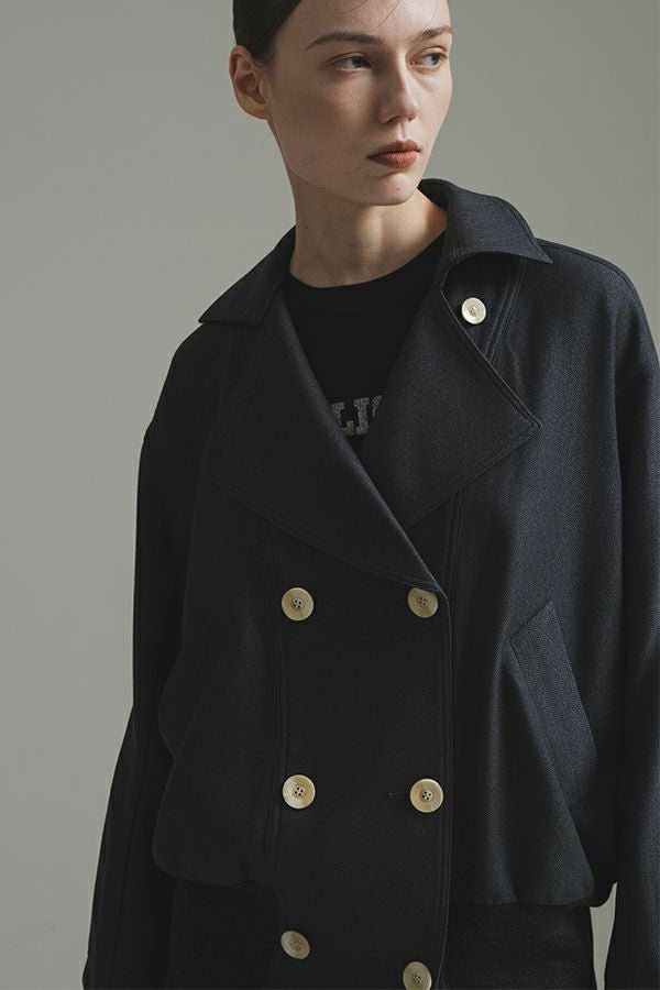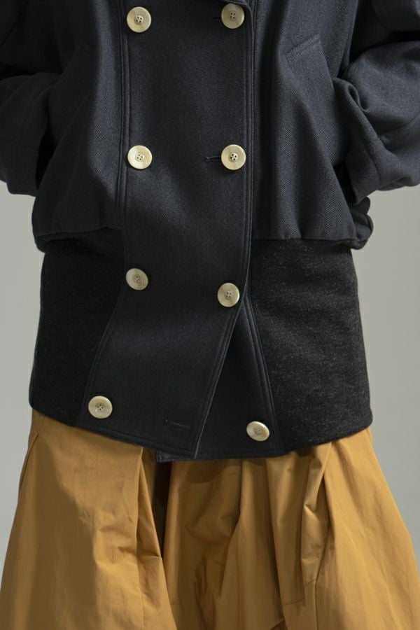 高機能ファブリックでスマートに決まる、ダブル釦ブルゾン。 ショートコートとしても活躍する汎用性の高いアイテムです。 ウールのような上品な表情を持ちながらも、イージーケア・ウォッシャブル・抗ピリング機能を備えた高機能ファブリックを採用。ツィーディなメランジ感が特徴で、程よいクラシックさとモダンな軽快さを兼ね備えた仕上がりになっています。 さらに、軽く、長時間着ても疲れにくい設計で、アクティブなシーンにも最適。 シンプルながらも計算されたシルエットで、トレンドを意識しつつも長く愛用できる一着です。「スマート&エフォートレス」機能美を兼ね備えた、ON/OFF問わず幅広いシーンで活躍します。 【秋のニュートラル&モダンなスタイル】 ワイドパンツやセンタープレスのスラックスと合わせて、洗練されたマニッシュな着こなしに。インナーはモックネックやハイゲージの薄手ニットをインして、すっきりまとめた大人スタイルを。シンプルでありながら洗練されたデザインが、どんなコーディネートにも合わせやすい万能アイテムです。 ●手洗い可●日本製生地使用