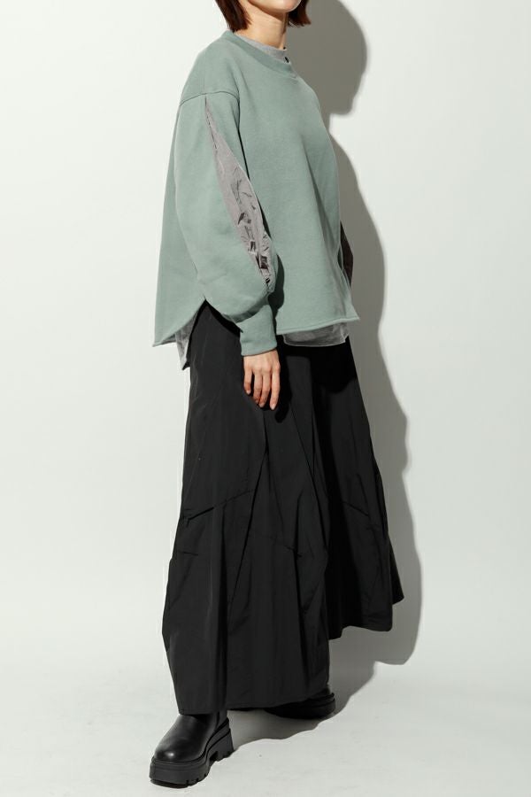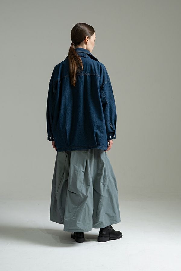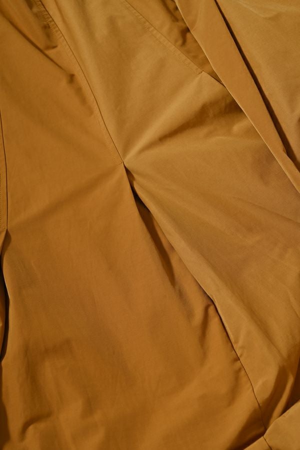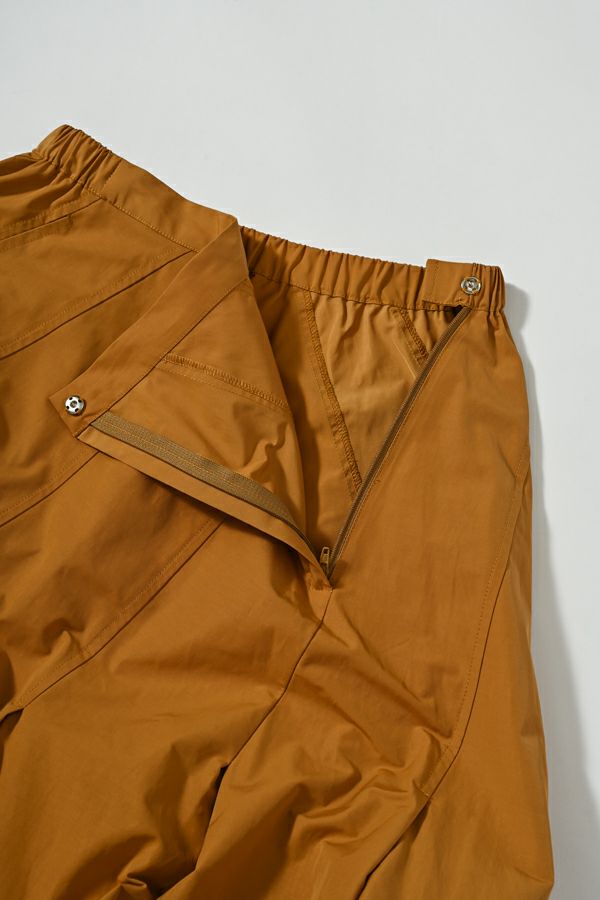 斜め切り替えが叶える立体シルエット、ツイストタックスカート。 しっかりハリ感のある綿/ポリエステルのタフタ素材を使用しており、ポリエステル混ならではのシワになりにくさと、カジュアル過ぎない上品な風合いを兼ね備えています。 ヒップ周りを斜めに切り替えることで、視覚的にスッキリとした印象を与え、スタイルアップ効果も抜群。タックが生み出すふんわりとしたシルエットが女性らしいニュアンスを添え、後ウエストゴム仕様で快適な着心地も実現しています。コンパクトなトップスを合わせてメリハリを意識すれば、より洗練されたコーディネートが完成します。日常からお出かけまで、幅広く着回せる一着です。