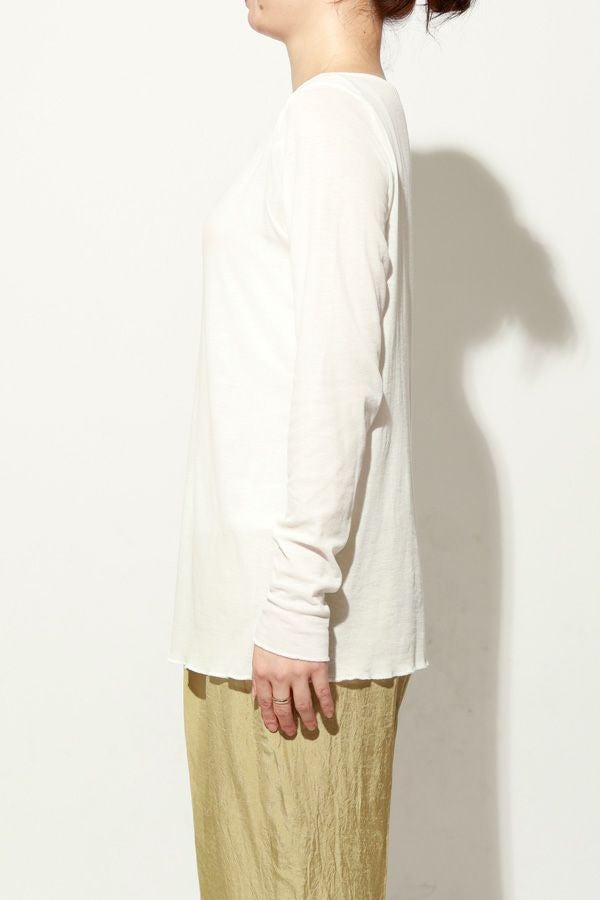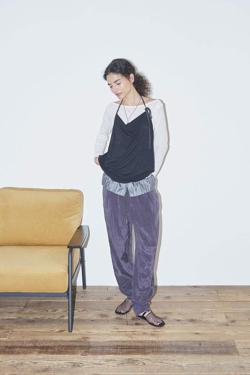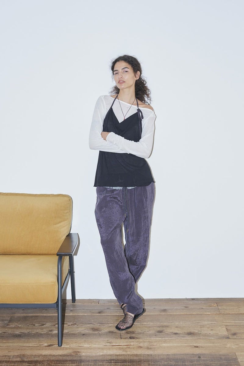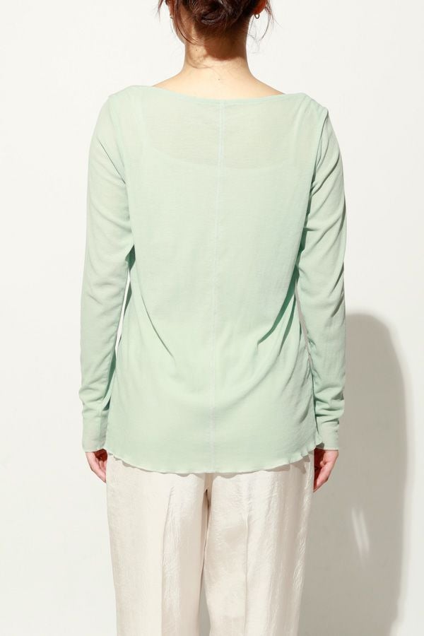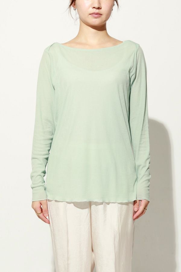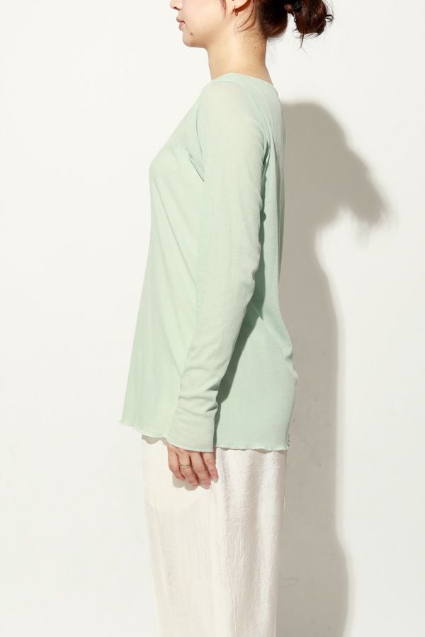 涼やかに纏う。しなやかに魅せる、大人のフライスプルオーバー。 強撚糸で編み上げたフライス素材が生み出す、さらりとした肌触りと美しいシルエット。触れた瞬間にひんやりと心地よい接触冷感機を備え、暑い日も室内でも快適に過ごせます。 柔らかく繊細なシアー感と高い伸縮性が、体に程良くフィットしながらストレスフリーな着心地を実現。広めに開いた衿ぐりが首元やデコルテをすっきりと美しく惹き立てます。 同素材のキャミソールとセットアップで纏えば、洗練された大人のムードに。単体ならTシャツ感覚で重ね着も楽しめ、春先から夏まで活躍する、日本製ならではのこだわりが詰まった万能トップスです。 ●日本製 ●フライスキャミ(26153-1867Z)とセットアップ可