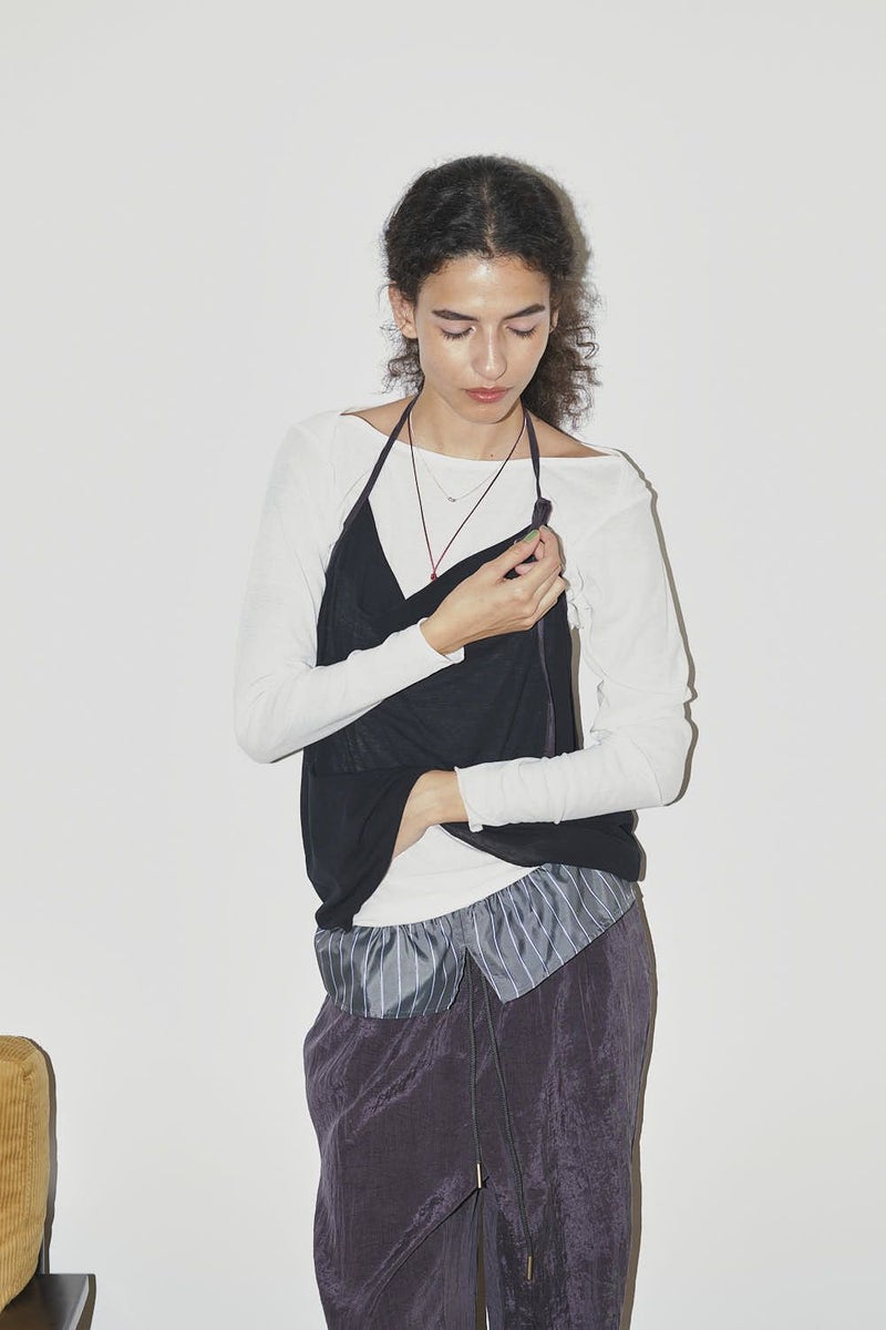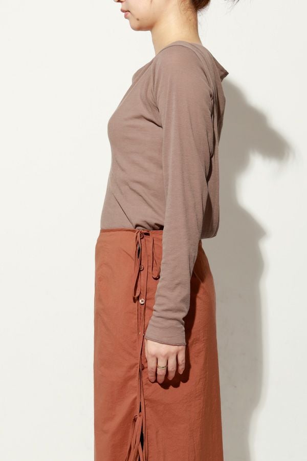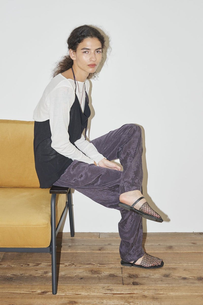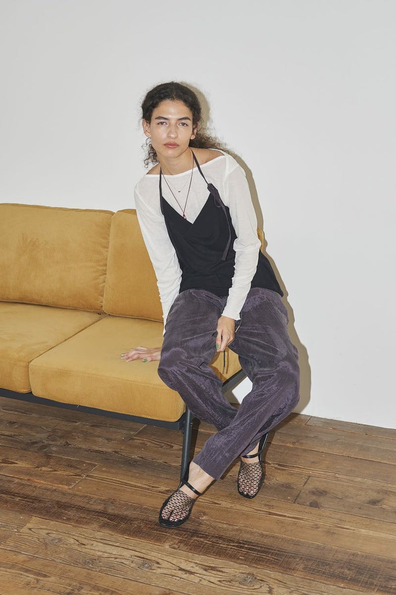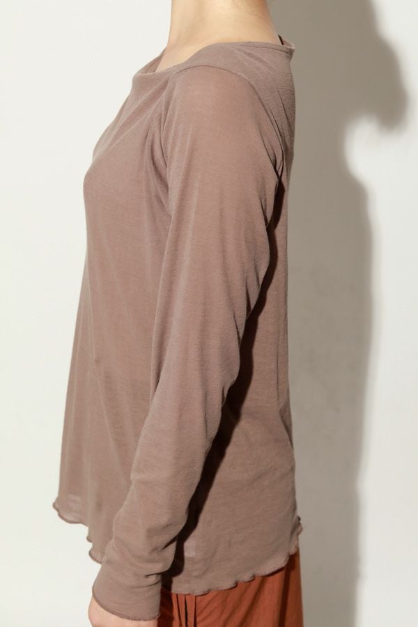 涼やかに纏う。しなやかに魅せる、大人のフライスプルオーバー。 強撚糸で編み上げたフライス素材が生み出す、さらりとした肌触りと美しいシルエット。触れた瞬間にひんやりと心地よい接触冷感機を備え、暑い日も室内でも快適に過ごせます。 柔らかく繊細なシアー感と高い伸縮性が、体に程良くフィットしながらストレスフリーな着心地を実現。広めに開いた衿ぐりが首元やデコルテをすっきりと美しく惹き立てます。 同素材のキャミソールとセットアップで纏えば、洗練された大人のムードに。単体ならTシャツ感覚で重ね着も楽しめ、春先から夏まで活躍する、日本製ならではのこだわりが詰まった万能トップスです。 ●日本製 ●フライスキャミ(26153-1867Z)とセットアップ可