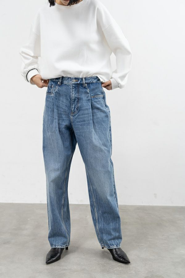 丸みを帯びたラインが女性らしいヴィンテージ風デニムパンツ。 メンズライクな中にタックを施し女性らしさのあるシルエットを出したデザインとやり過ぎてない加工感が人気!厚すぎない12oz(オンス)デニムでなじみがよく履きやすいデニムです。 カジュアルにはもちろん、抜け感を出すアイテムとしても万能なデニムパンツはジャケットとのコーディネートにはマスト!シーズン、ジャンルを問わず活用頂けます。 ●3サイズ展開 ●同型でワンウォッシュバージョン(24223-9646WE)も有。