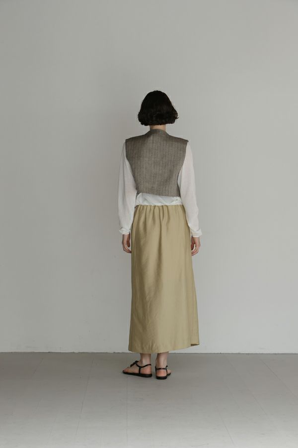 シンプルさの中に一目置かれる存在感のスカート。 前後2WAY仕様で着用可能。混率に含まれている竹は天然の抗菌力を持っており、柔らかく通気性があり、滑らかで肌にも優しい繊維です。ジャガードで織り柄が入っており高級感のある素材です。 ウエストは見返しとインベル(ウエスト部分に使用する芯材)タイプに仕上げているのですっきりとスマートに着用頂けます。前身頃に入れたタックによって歩くたび動きが出て女性らしい印象的に。 大人なIラインシルエットですがカジュアルな合わせで抜け感を出したスタイリングも可能です。ジャケットとセットアップコーデならオケージョンまで幅広く活用頂けます。 ●同素材でジャガードタックジャケット(25153-6079E)も有。 ●セットアップ可