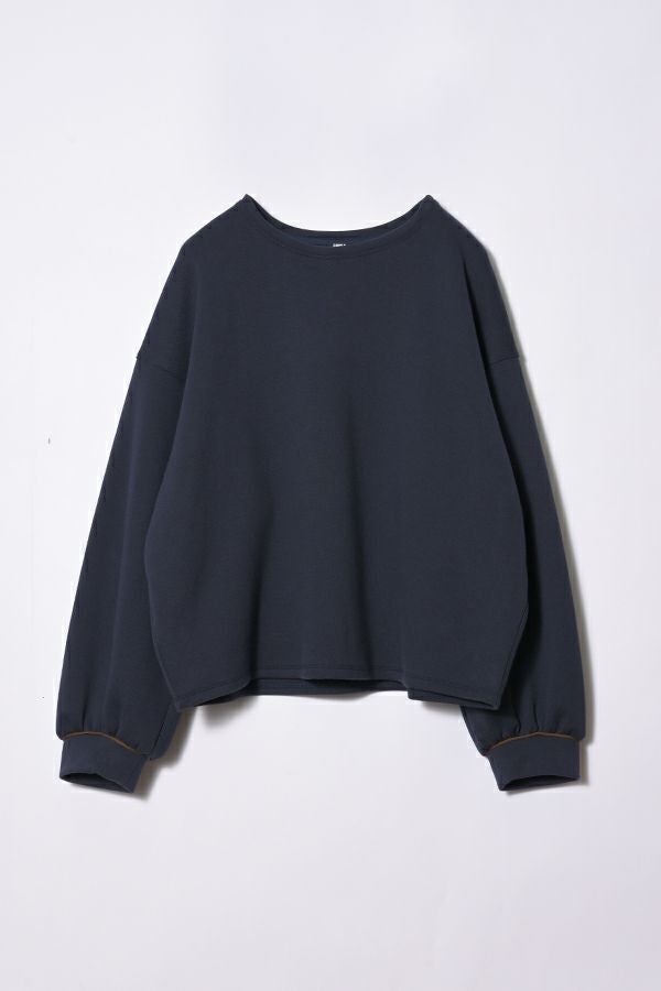 配色パイピングがポイントの大人ロンTEE! パイピングはインポートテイストな配色にし、後ろ身頃のラグランラインにも入れることで「抜け感」をプラスし より大人が着れるカジュアルなカットソーになっています。 中肉の鹿の子を使用していますで初秋に薄めのトレーナー感覚で着用頂けます。 スポーティーな印象の鹿の子生地ですが、短丈のコクーンシルエットと袖口にタックのデザインを落とし込むことで女性らしさを演出し、感度の良い仕上がりに。 フレアスカートやワイドパンツなどボリュームのあるボトムとの相性も良いですし、タイトスカートでもバランスよく着られるのが短丈コクーンシルエット! 足元やアクセサリーなどキレイめなアイテムを合わせることでONスタイリングにもなります。
