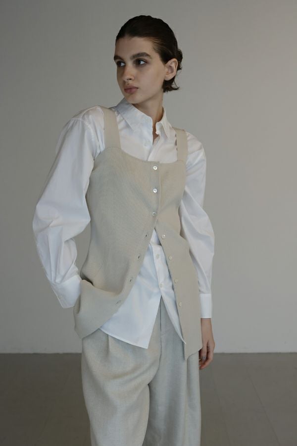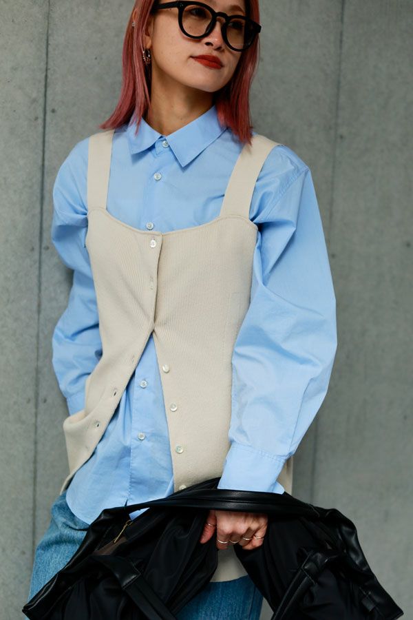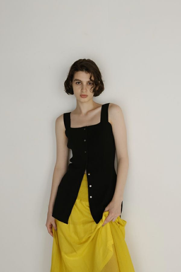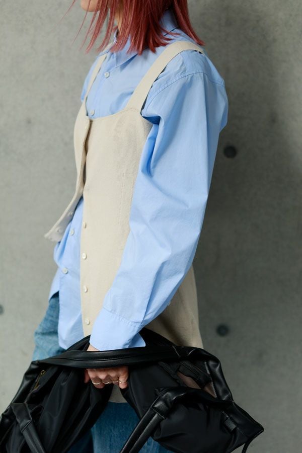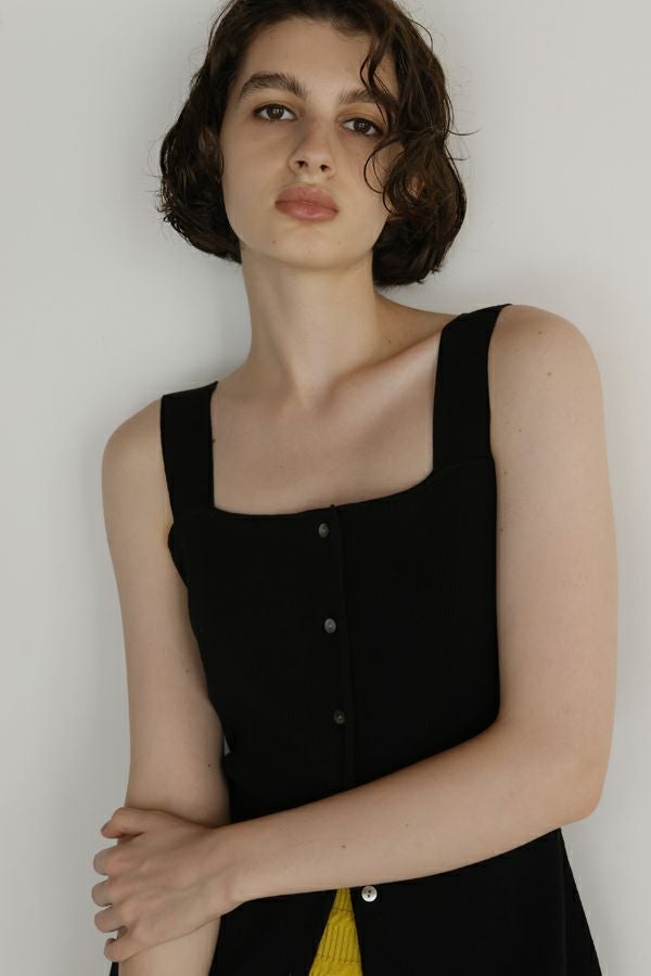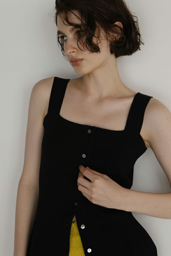 グッとあがる雰囲気を醸し出す大人ニットタンクトップ。 大人の女性シルエットに設計された細やかなリブ編みで、チュニック丈の前開き仕様がコーデの幅を広げてくれます。 素材のポリエステルはPBT(ポリブチレンテレフタレート)繊維が使われています。PBT繊維は伸縮性があることが特徴ですが、よく耳にするポリウレタン素材よりもゆるやかなキックバックなので長時間着ていてもストレスフリーで快適なストレッチ感とハリ感、耐薬品性がありポリウレタンよりも劣化しにくいのでハンドウォッシュが可能な優れたアイテムです。 1枚着で大人女性のスタイリッシュな着こなしに、さらにジャケットを羽織ってモードスタイルになります。 ●前後着用可能な2WAY仕様 ●手洗い可能