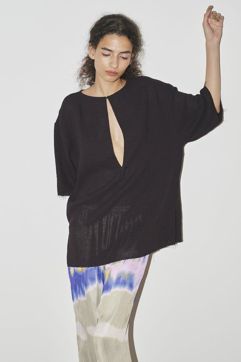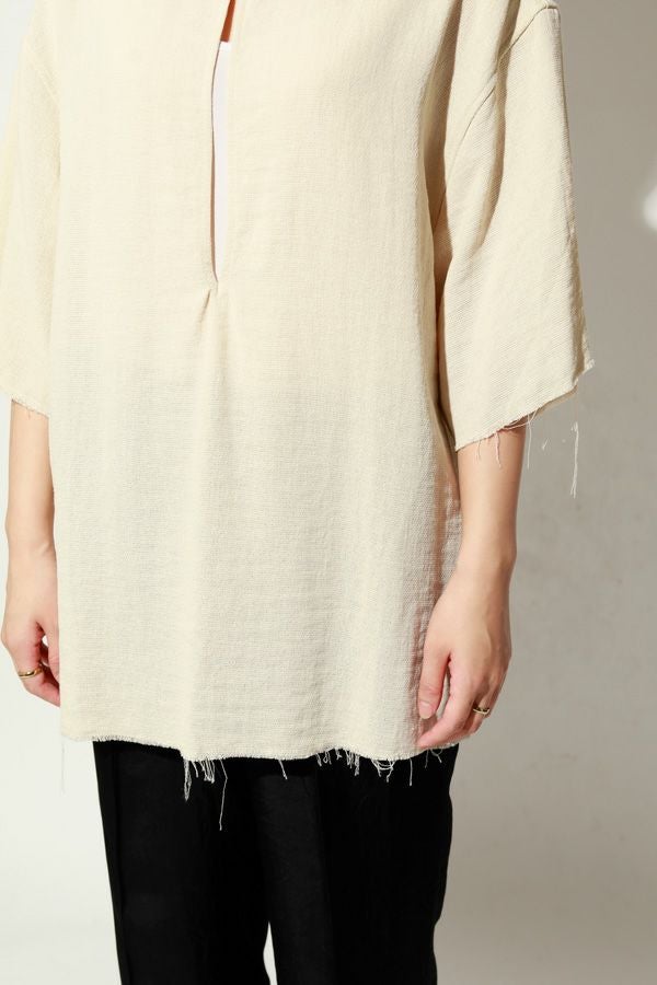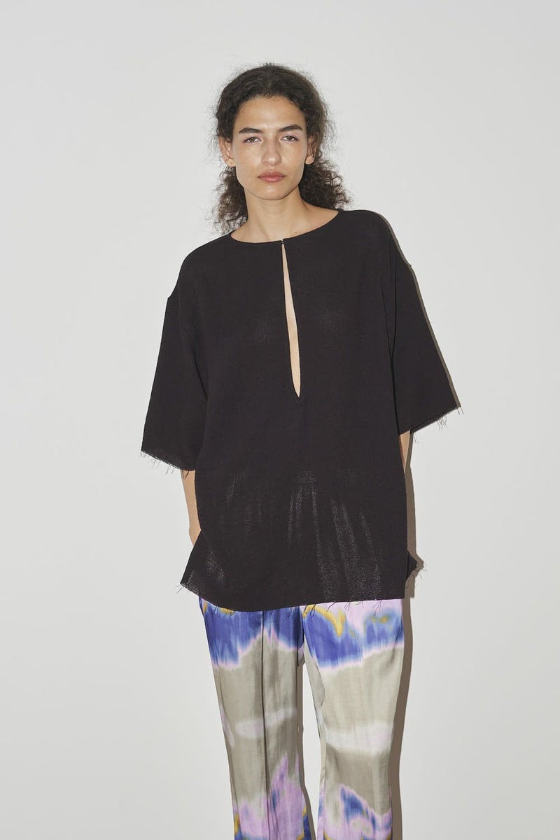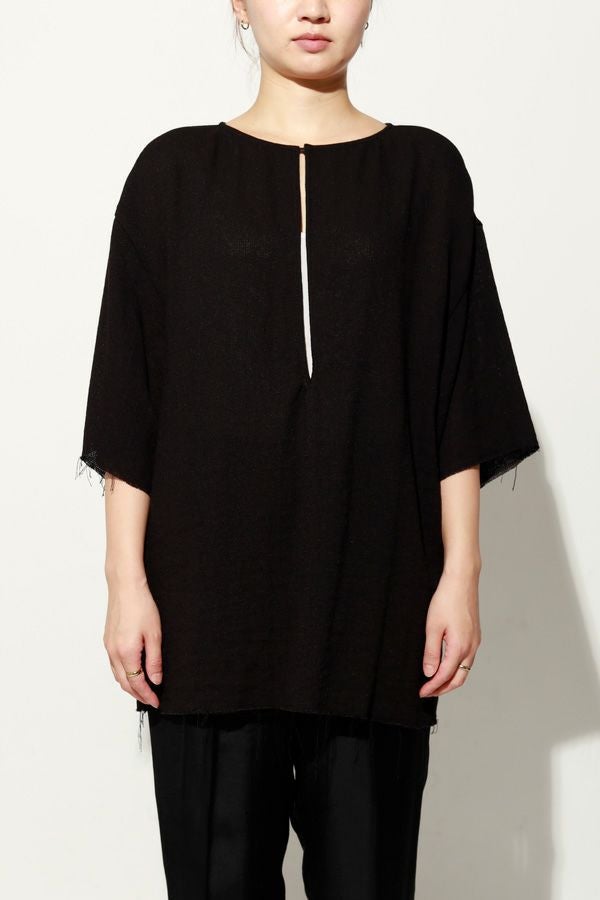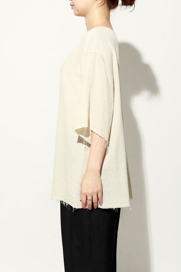 軽やかに、風を纏う。大人の洗練メッシュプルオーバー。 落ち感のあるメッシュ素材が生み出す、抜群の通気性。 フロントにあしらわれたスリットデザインが、着脱のしやすさと同時にモードな表情を添えます。 肌離れの良い軽やかな質感と程よいゆとりが、リラクシーでありながらも上品な印象を演出。 春夏の装いに欠かせない、大人のためのマストアイテムです。 インナーにはシンプルなタンクトップを合わせ、軽やかさをキープ。 フロントスリットをほんの少し開けてインナーを覗かせれば、自然な抜け感が生まれ、より洗練された着こなしに仕上がります。