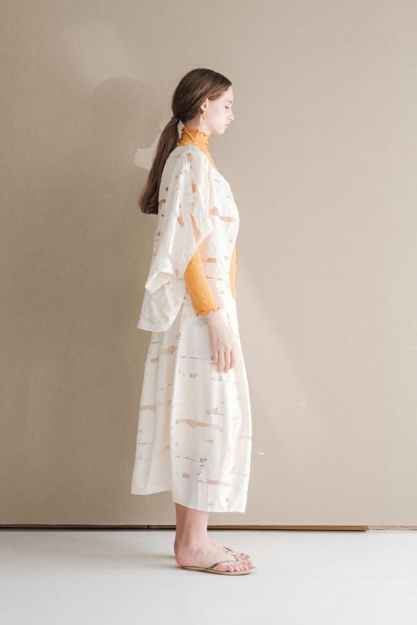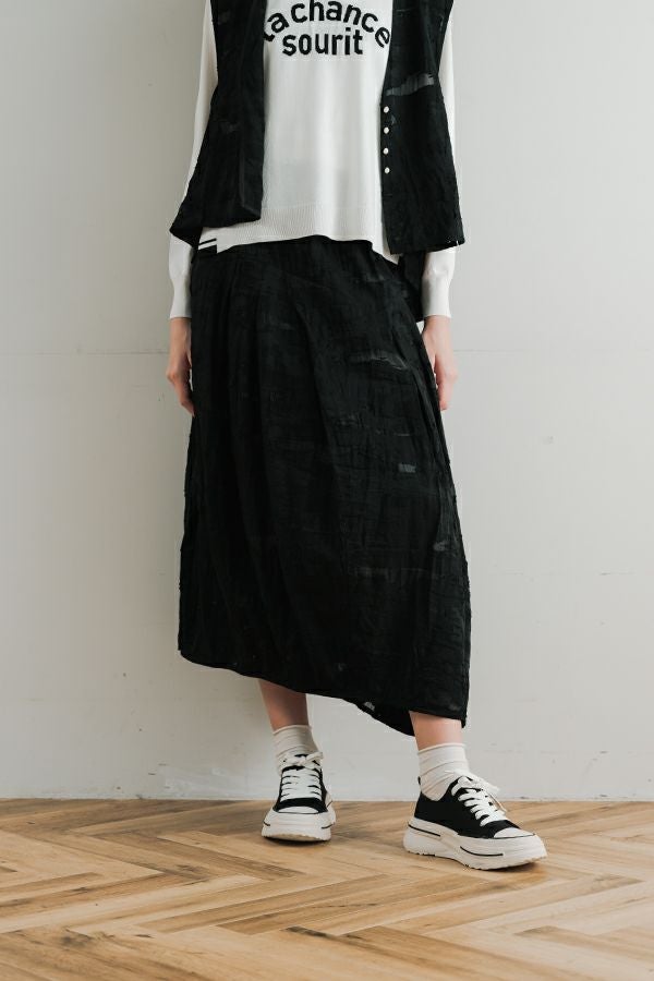 マーブル柄タックカットスカート
