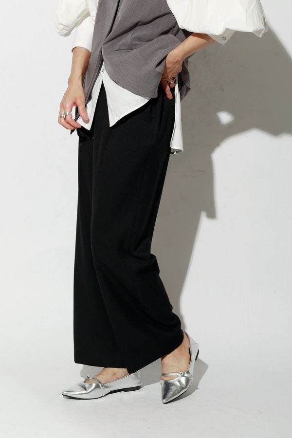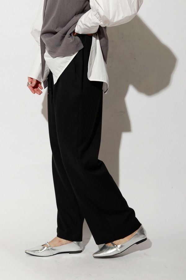 穿くだけで美脚見え、日常をアップデートする洗練ストレートパンツ。 脚をまっすぐ、すらりと見せるパターン設計にこだわった、美シルエットのストレートライン。ハリ感としなやかさをあわせ持つ素材を使用しており、ラインを崩さず美しい仕上がりに。ウエストはゴム入りで締め付け感がなく、着脱も簡単。リラックス感ときちんと感を両立した一本です。 2025-26年秋冬のトレンドの「ワントーンコーデ」「リラックス×モード」を意識した着こなしにも活躍します。 【晩夏のアーバンリラックス × シアーレイヤード】 シアー素材のシャツやビッグTシャツを合わせ、抜け感のあるシンプルコーデに。 【モード × クラシックミックス】オーバーサイズのジャケットやスタンドカラーブルゾンを羽織りシャープな印象にし、インナーはコンパクトな長袖シャツで、スタイルアップ。 ●日本製●3サイズ展開