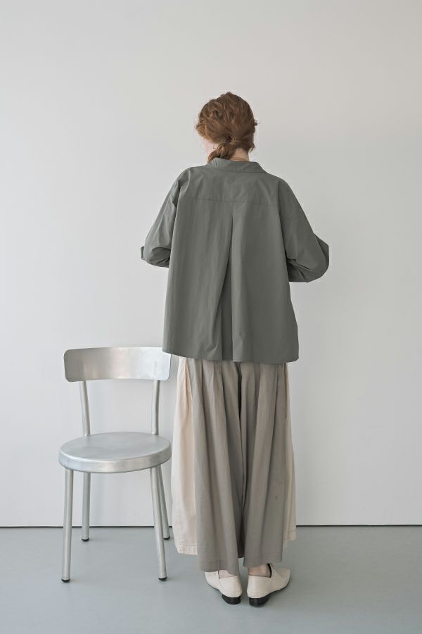ヴィンテージの風合いが活きる、スカート見えワイドパンツ。 細かなシボ感とライトでソフトな風合いが特徴のヴィンテージ素材を使用。 何本も入れたタックがポイントとなり、まるでスカートのようなシルエットを生み出すデザイン。ヒップ位置までの中縫いが、お腹周りをやさしくカバーしてくれるので、リラックス感と美しいラインを両立しています。 9分丈に設定された少し短めのレングスが、身長を選ばずバランスよく着こなせるのも魅力。足元をすっきりと見せて、抜け感のあるスタイルを実現します。 ウエストには内側にコードを配し、調節可能な仕様で快適なフィット感をキープ。 脇の配色デザインが、カジュアルモードな印象をプラスし、コーディネートに新鮮なアクセントを加えます。 動きやすさとおしゃれ感を兼ね備えた一本で、デイリーコーデを格上げしてくれるアイテムです。 ●ジップアップライトベスト(25228-5449F-R)とセットアップ可