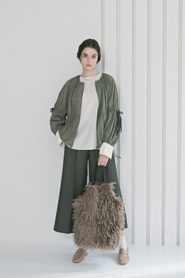 シンプルなニットやブラウスはもちろん、ボリュームのあるトップスともバランス良く決まるデザイン。大人っぽく洗練された、同色系のワントーンコーディネートもおすすめです。