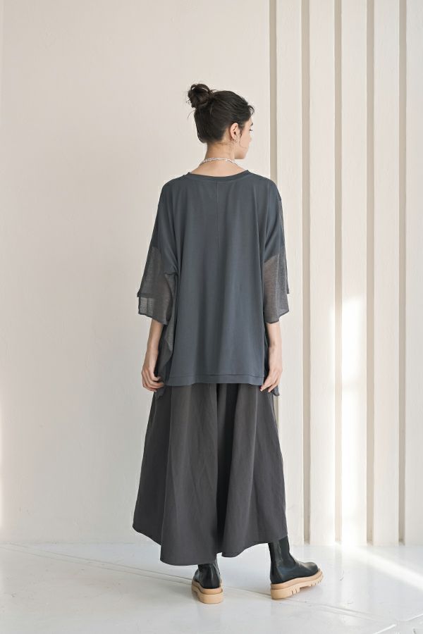 華奢ストラップが映える、大人のリラックスサロペット。 女性らしい細めのストラップデザインが印象的な一着。コットンリネン素材ならではのドライタッチな風合いが、大人のリラックスムードを演出します。 前ストラップは自由に結び玉を作ることで長さ調整が可能。後ろウエストは内側に施されたリボンテープで表情を変える事も出来ます。さらに、後ろストラップには橋テープを施し、肩落ちを防ぐ仕様に仕上げています(※撮影サンプルには橋テープが付いておりませんのでご了承ください)。 Tシャツやフィット感のあるトップスを合わせた、オールインワンを主役にしたコーディネートがおすすめ。インナー次第でシーズンレスに活躍し、ストラップを垂らしてパンツとして着こなすのも◎。自由自在なアレンジが楽しめる、こだわりの詰まった一着です。