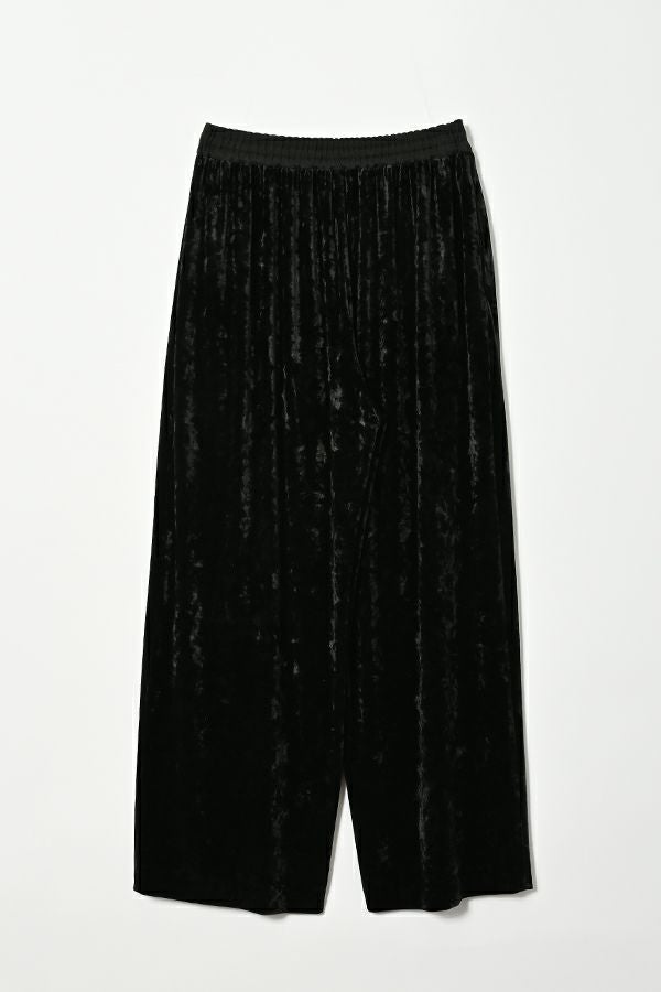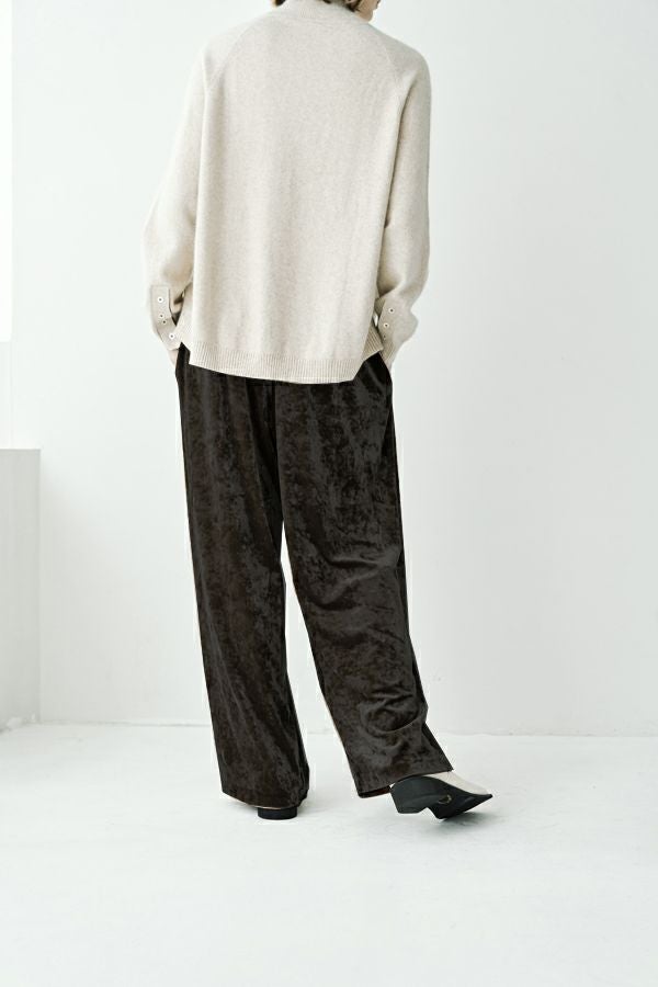 さりげない光沢が上品な印象を与えるクラッシュベロアを使用した、大人のための一本。さらりと肌離れがよく、落ち感のあるシルエットは、身体のラインを拾わずすっきりと魅せてくれます。