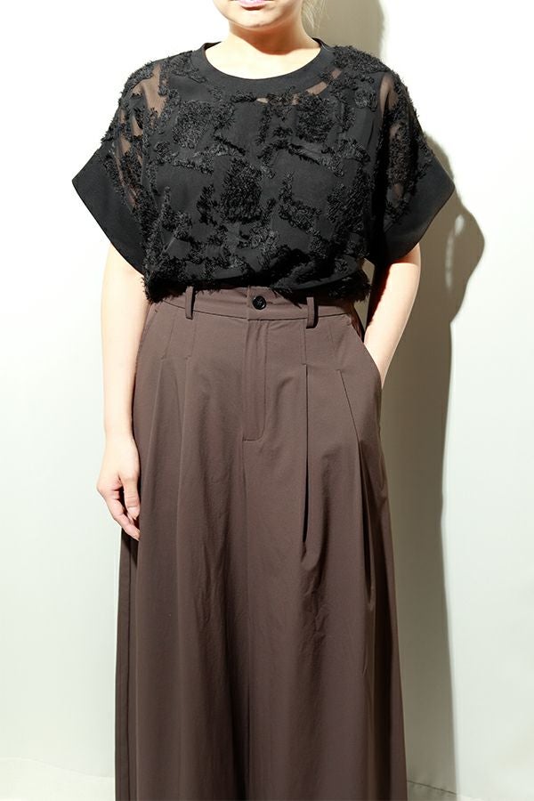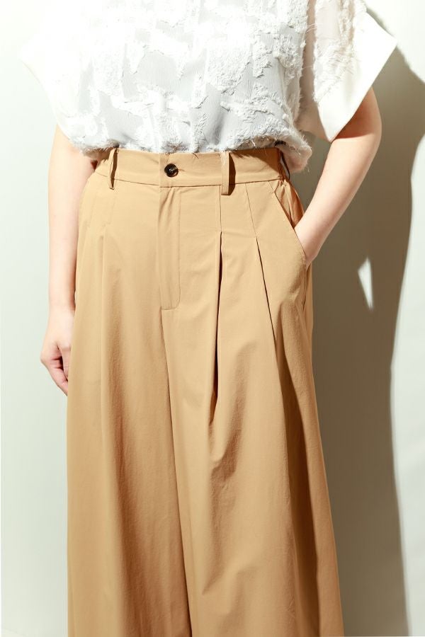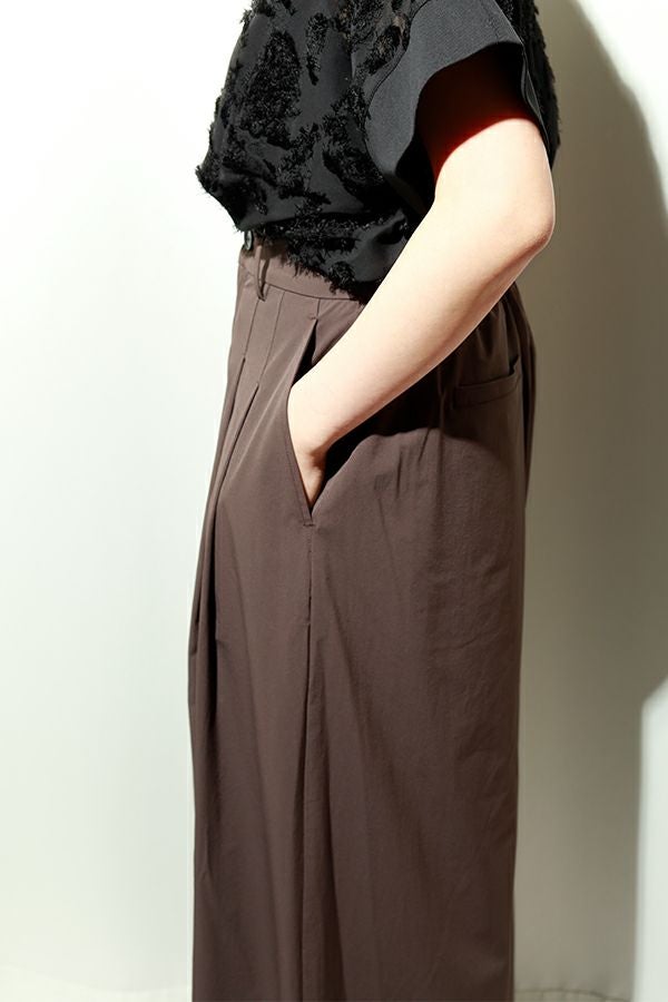 合わせるトップス次第で印象は自在。シアーシャツで涼しげに、コンパクトなトップスでスタイルアップを意識した装いもおすすめ。足元はヒールで女性らしくまとめたり、フラットシューズで抜け感を出したりと、ON/OFFを問わず品よく馴染む“着回し力”が大人のワードローブにフィットします。