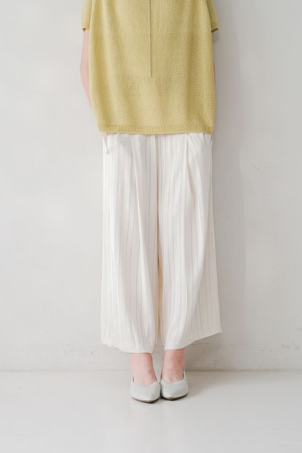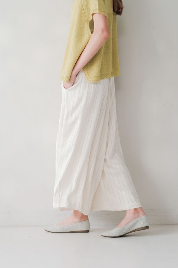 しなやかな光沢と繊細なステッチが描く、大人の洗練キュロットパンツ。