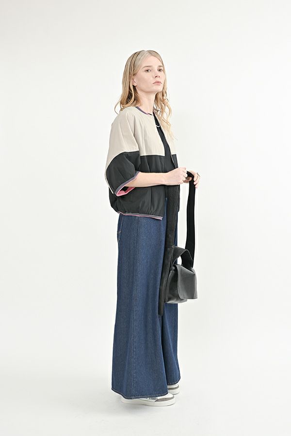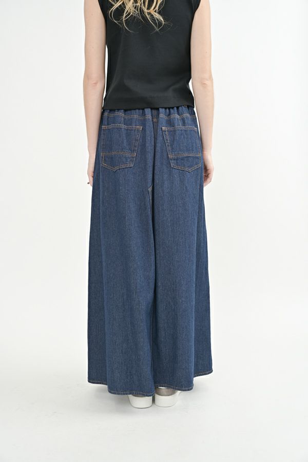 前から見るとワイドパンツ、後ろから見るとAラインスカートになっているデザインパンツ! 後ろはゴム仕様になっているのでラクチン!なのにオシャレ!! 股下にステッチが入っているの為、生地が足の動きに付いてくるので、自転車に乗った時に車輪に巻き込まれる可能性も軽減されます。