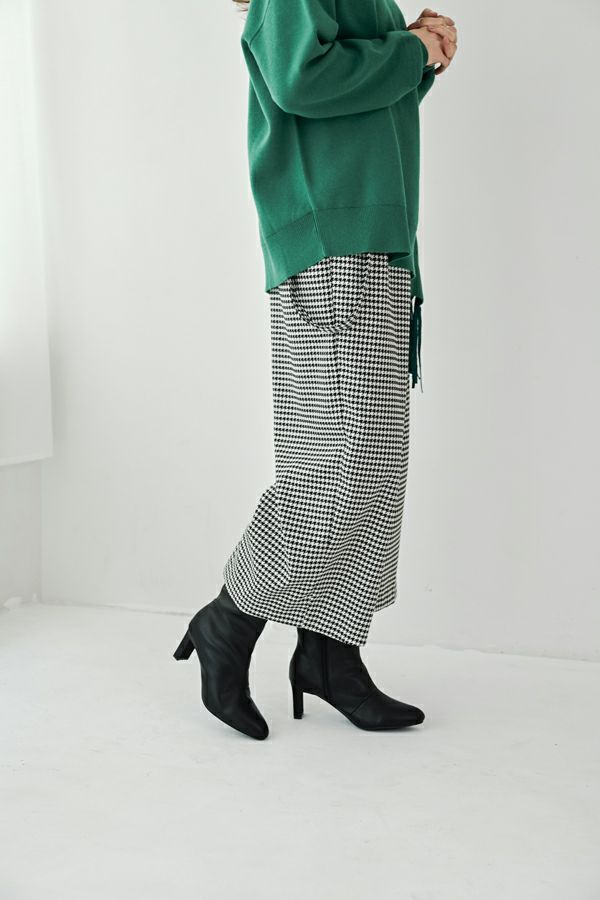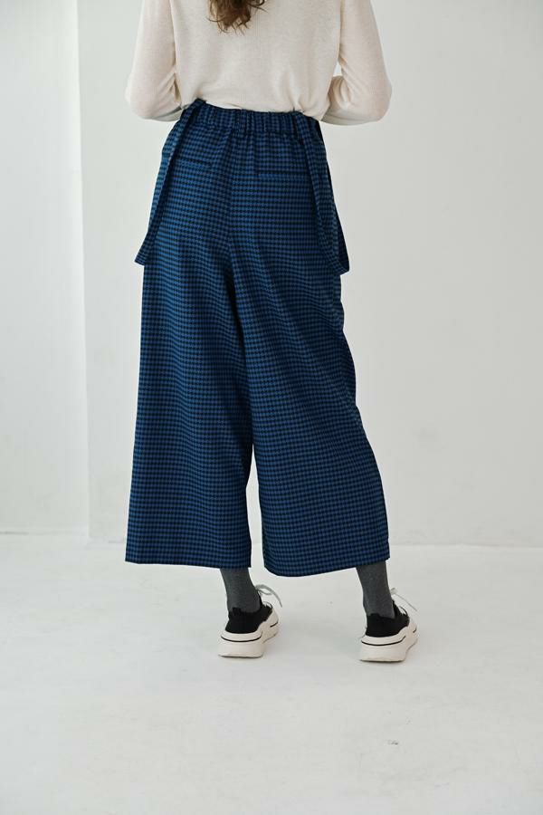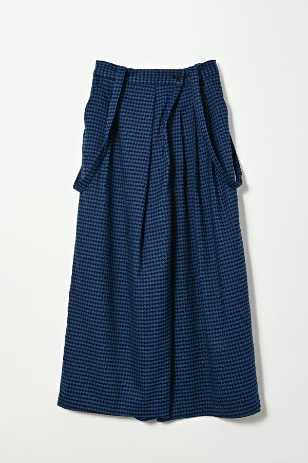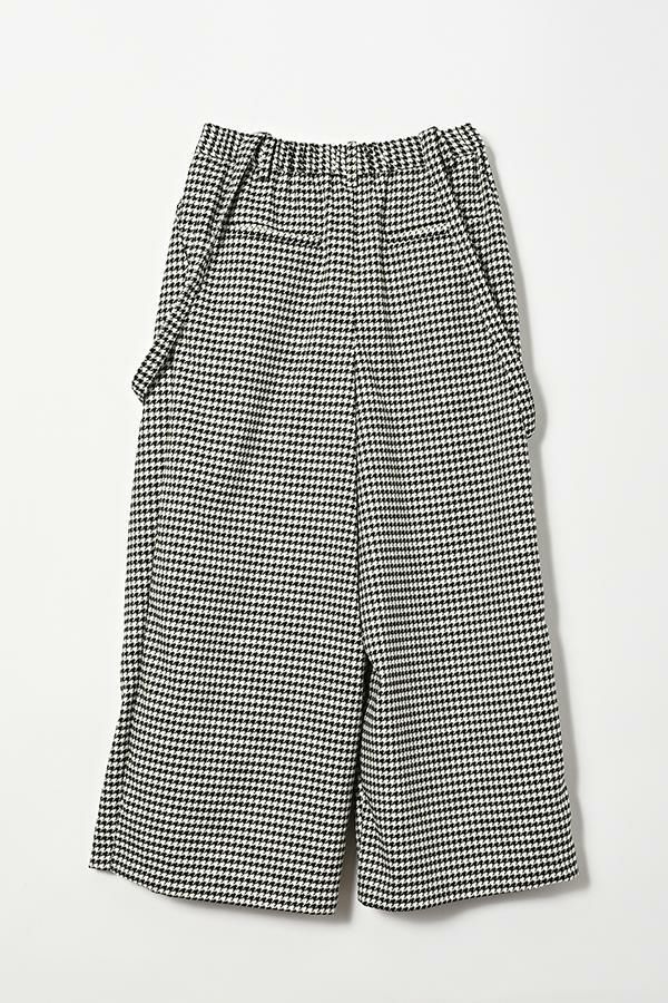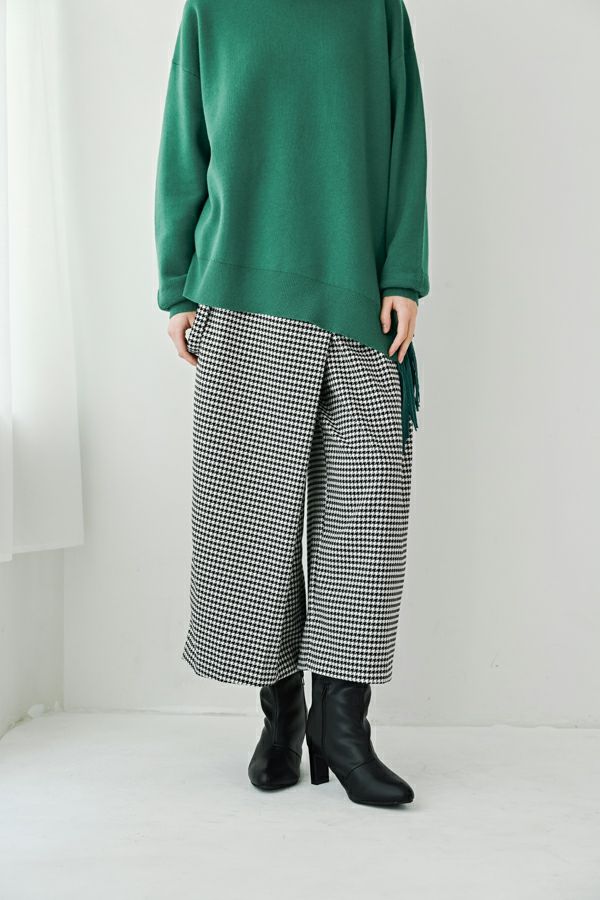 スカート見えの軽やかさ。大人のための、モードなラップパンツ。 一見スカートのような立体感あるシルエットながら、動きやすく軽やかなラップデザインのパンツ。小さめの千鳥柄がほどよくキッチュで、甘さを抑えた大人のカジュアルスタイルを惹き立てます。 柄の主張が強すぎないため、意外なほど着回しやすく、合わせるトップスで表情を変えられるのも魅力。かっこよさと愛らしさを兼ね備えた、大人の日常に寄り添う一着です。