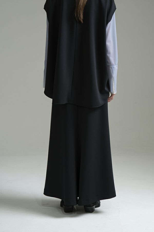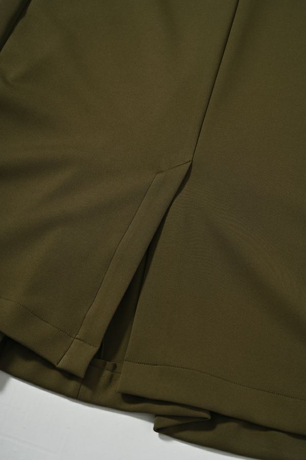 快適さと美しさを両立した、大人美シルエットスカート。 程よい厚みのあるダンボール素材が下着のラインを拾いにくく、安心感のある仕上がりに。UVカット機能とさらりと肌になじむ優しい生地感が秋の始まりにちょうどいい。滑らかな肌触りと落ち感が特徴で、歩くたびに美しく揺れるシルエットが上品さを惹き立てます。 【晩夏のクリーンモードスタイル】 シンプルなノースリーブトップスやタンクトップと合わせて、ミニマルで洗練された大人の装いに。 【秋のレイヤードスタイル】 同素材のプルオーバーやジレとセットアップで着こなせば、統一感あるワントーンコーデに。さらにトップスにシアータートルネックをレイヤードすれば、秋らしい抜け感を演出。季節をまたいで長く愛用できる、機能性と美しさを兼ね備えたスカートです。 ●日本製シーンレスプルオーバー(25223-1545Y)とセットアップ可