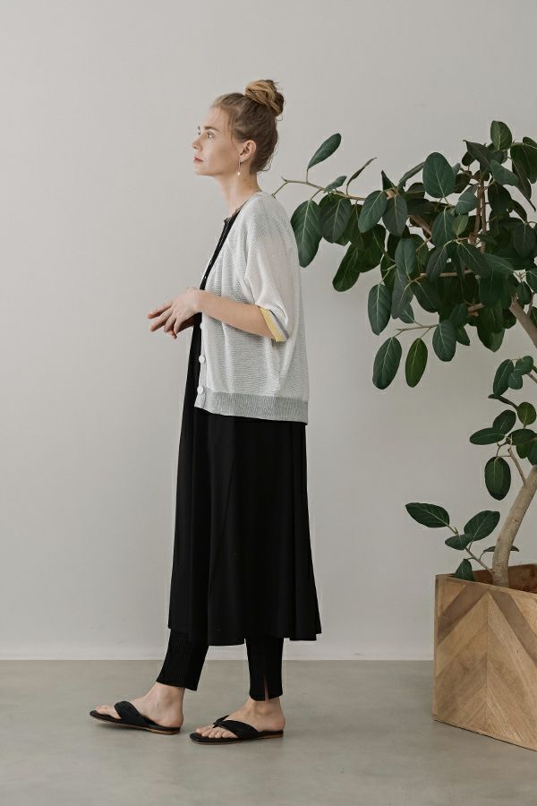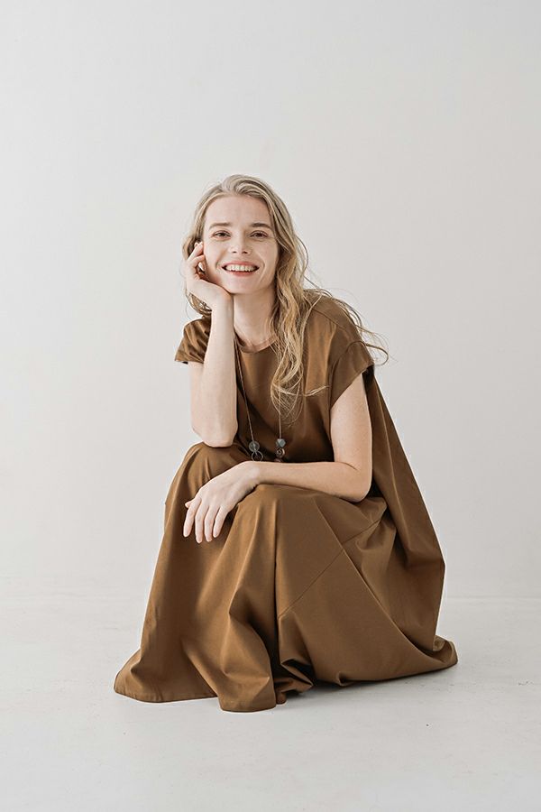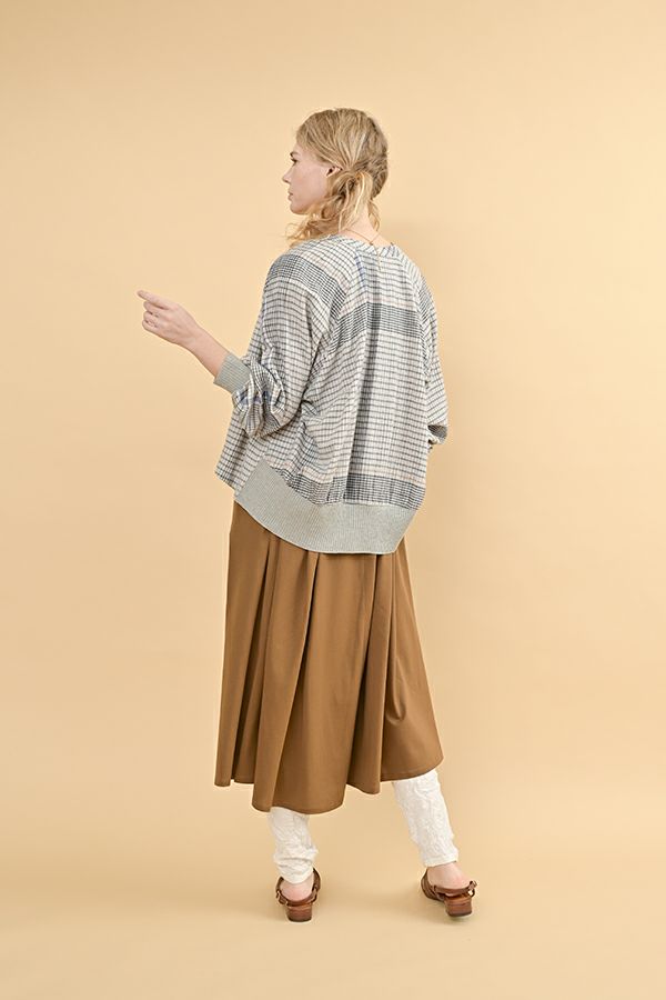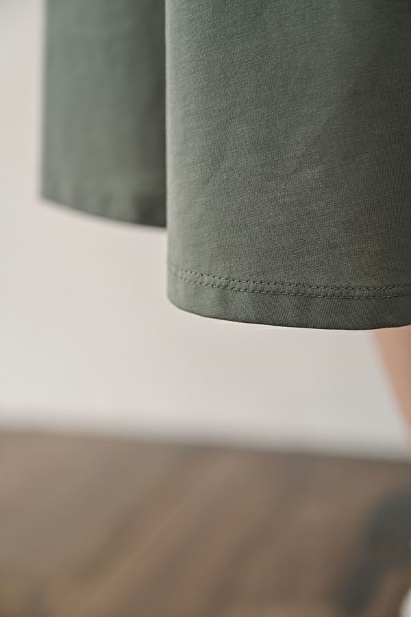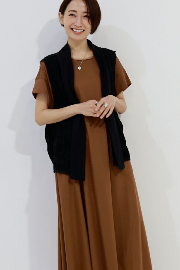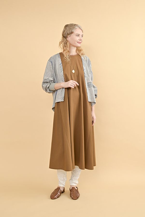 お待たせしました!発売からご好評いただいている半袖ワンピース!待望の再入荷です。新色グリーンが加わり、全4色に! 薄手のシルケット加工のカットソー素材は光沢感あり発色性も良く落ち感もあるので分量感たっぷりでも軽くて楽チン。 体を締め付けず着心地満点のきれいめワンピース。 ドロップショルダーと広めの袖で肩回りをカバーし、前のタテ切替えが全体をスッキリ見せ 脇線が無いのでフレアーラインがきれいにでるシルエットです。 襟元は薄いオーガンジーを使い華奢な印象で顔周りを華やかに見せます。レギンスやソックス+スニーカーやニットボレロと相性GOOD! 追加ブラウン/新色グリーン 4月下旬入荷予定
