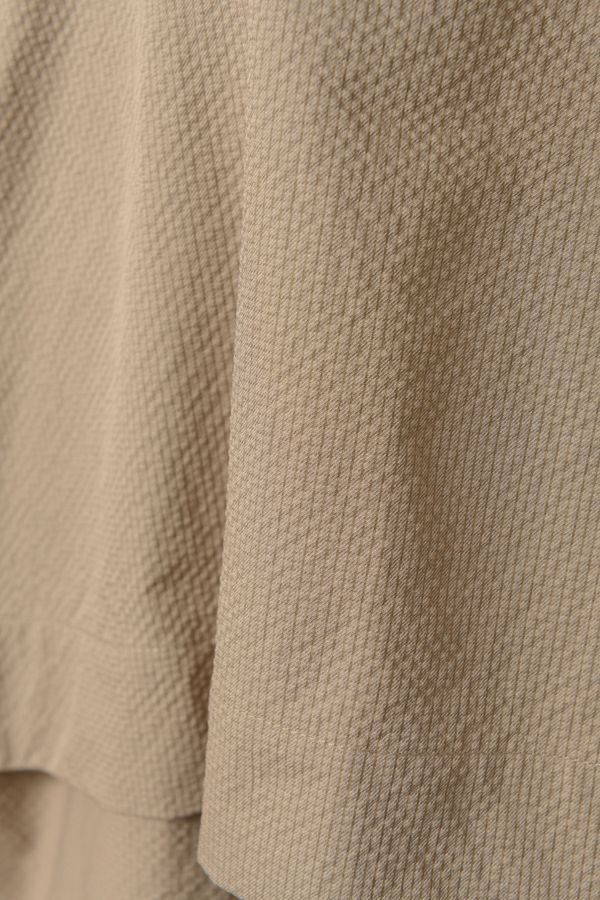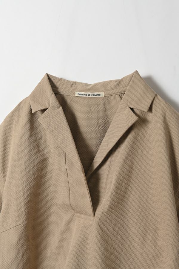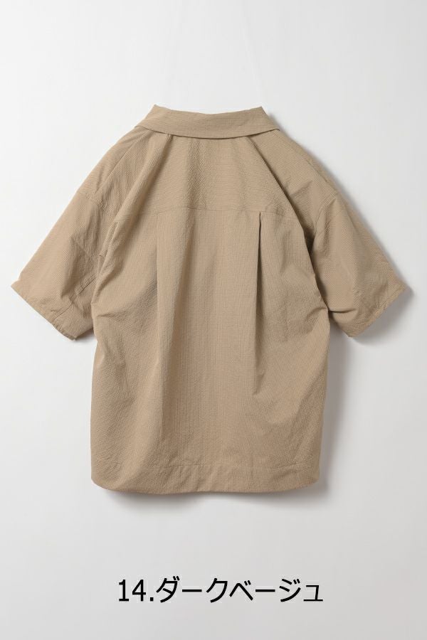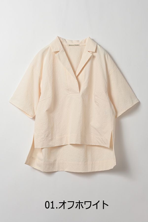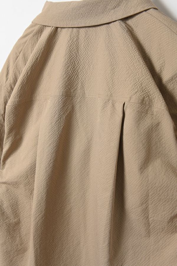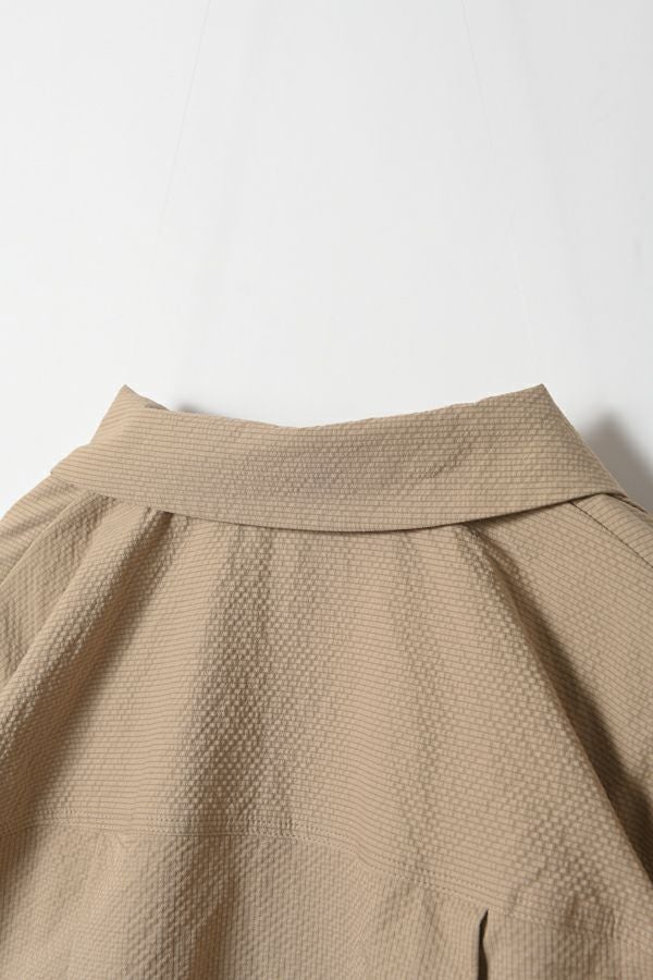 凹凸感のある独特な雰囲気のある素材を使用したスキッパーシャツ。 袖の作りが立体なっているので、独特なシルエットになっています。 清涼感のある素材なので、夏のデザインシャツとして使いやすいアイテムです。