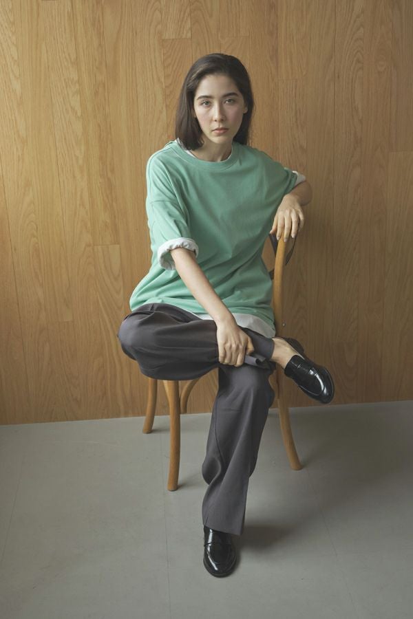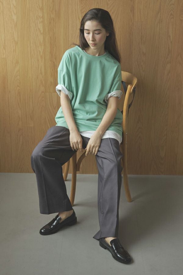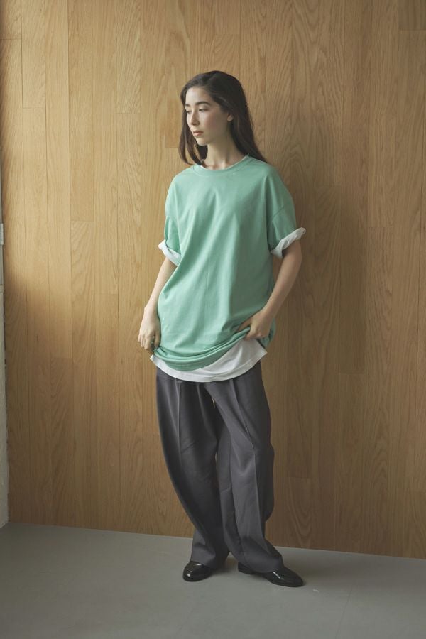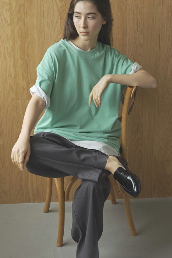 たっぷりとした着丈が印象的なきれいめチュニックTEE。
