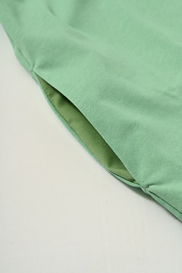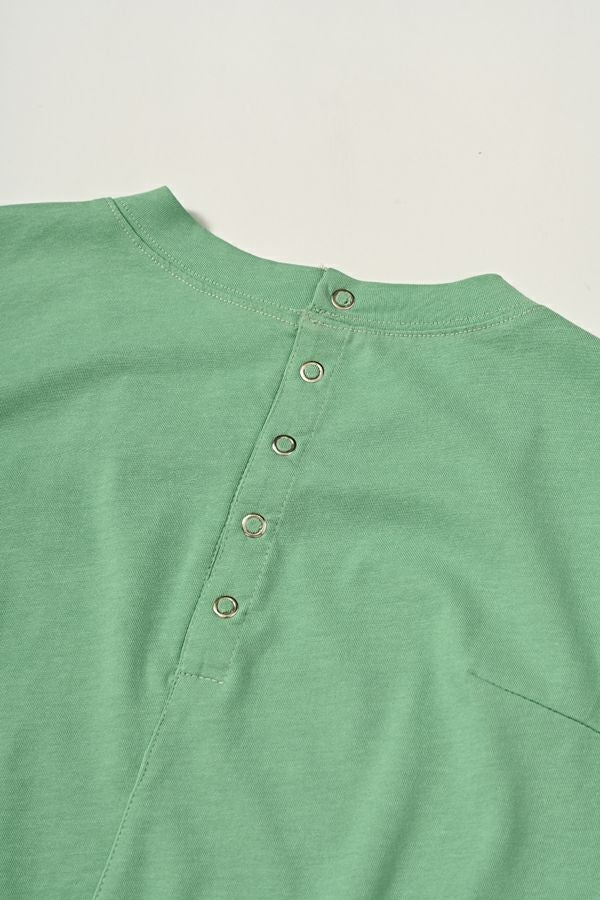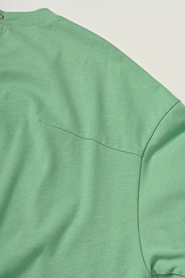 強撚の天竺を使用しています。強撚糸は、吸水性と速乾性に優れ、繊維が丈夫で毛羽立ちが少ないので肌触りが非常によくサラサラとした肌触りが特徴。夏素材に多いシャリ感(清涼感)もあります。