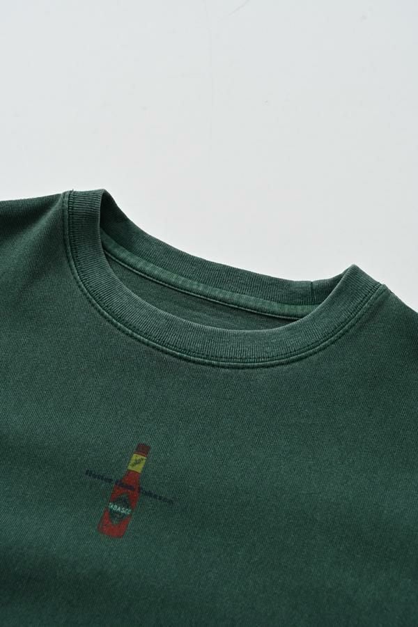 小さめのタバスコの瓶をプリント。南北戦争時、タバスコの創始者が一時期テキサスに逃れていたことから、関連があったかも、、、という想像をイメージしています。