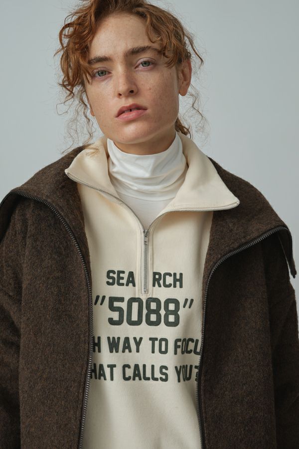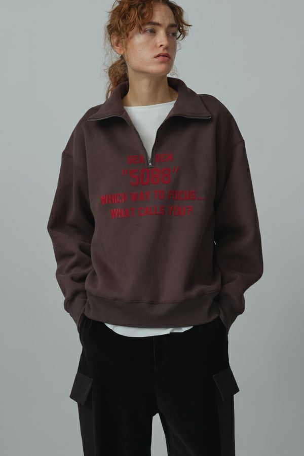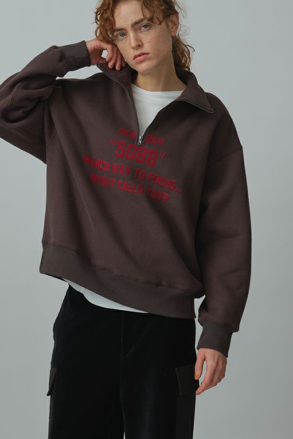 プリント裏起毛ハーフジップ