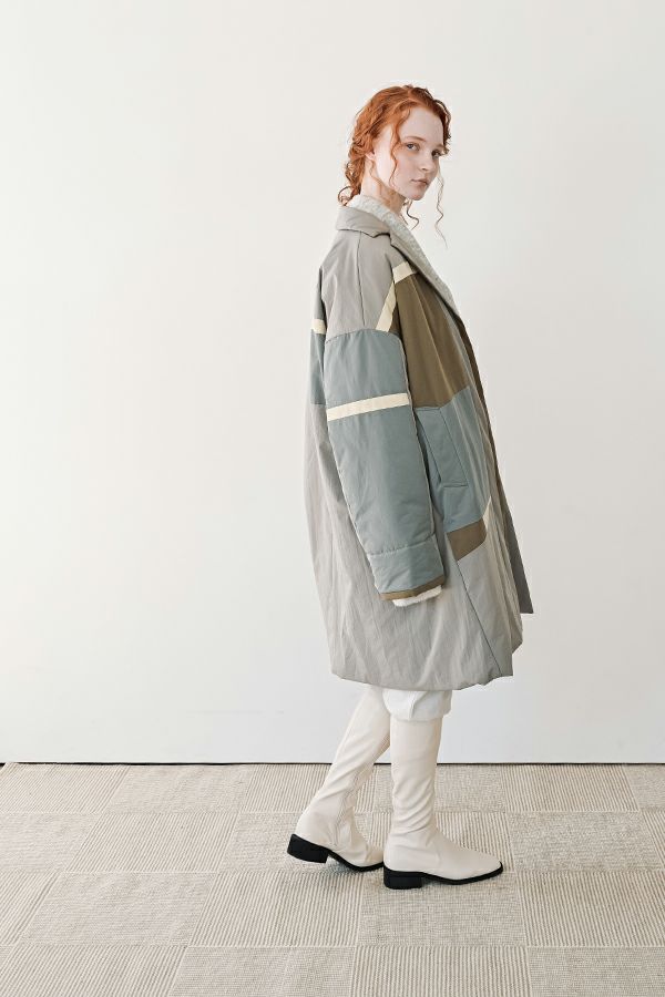 配色パッチ中綿コート