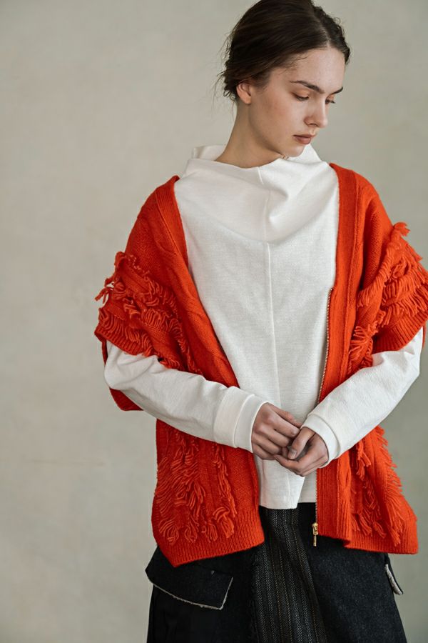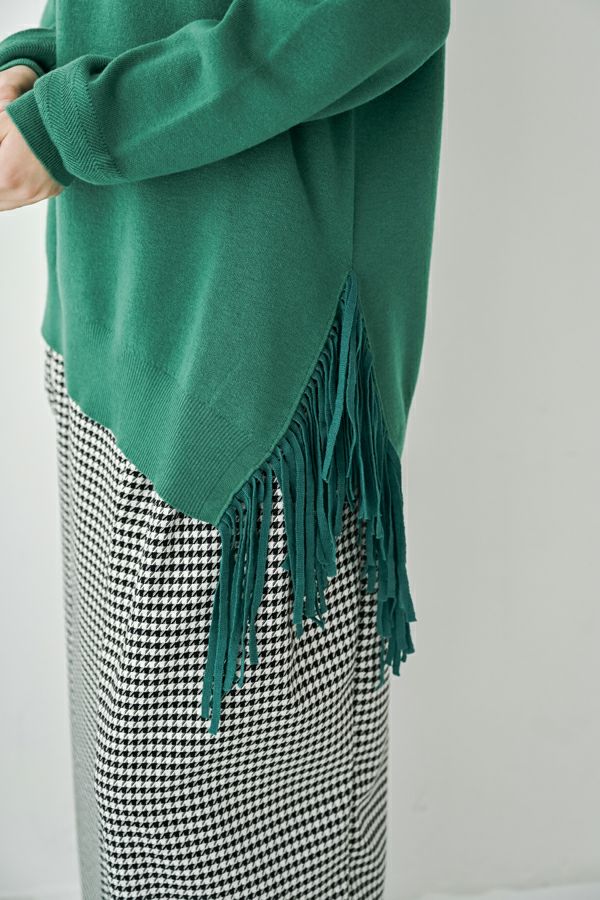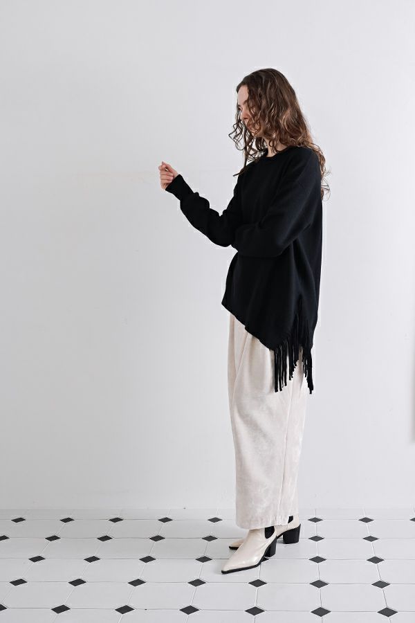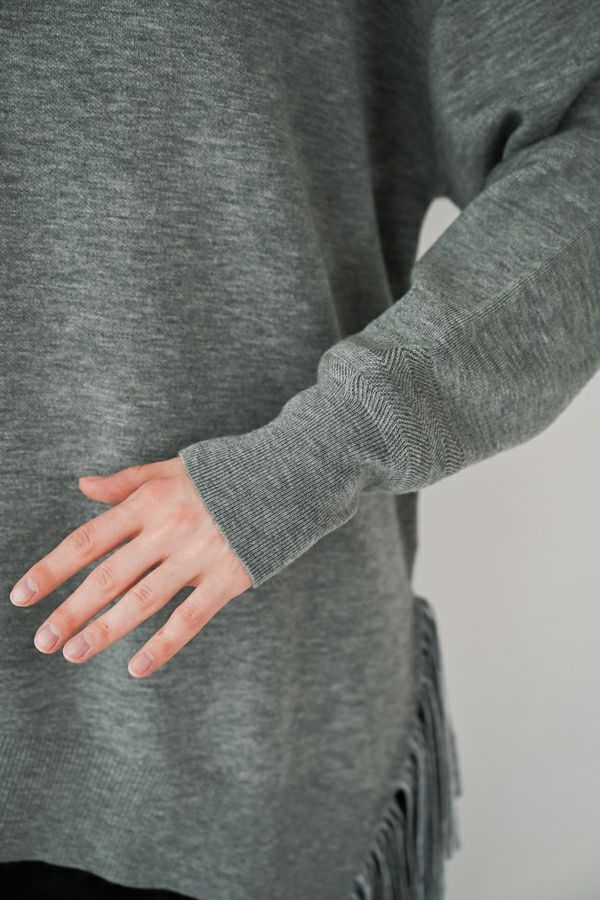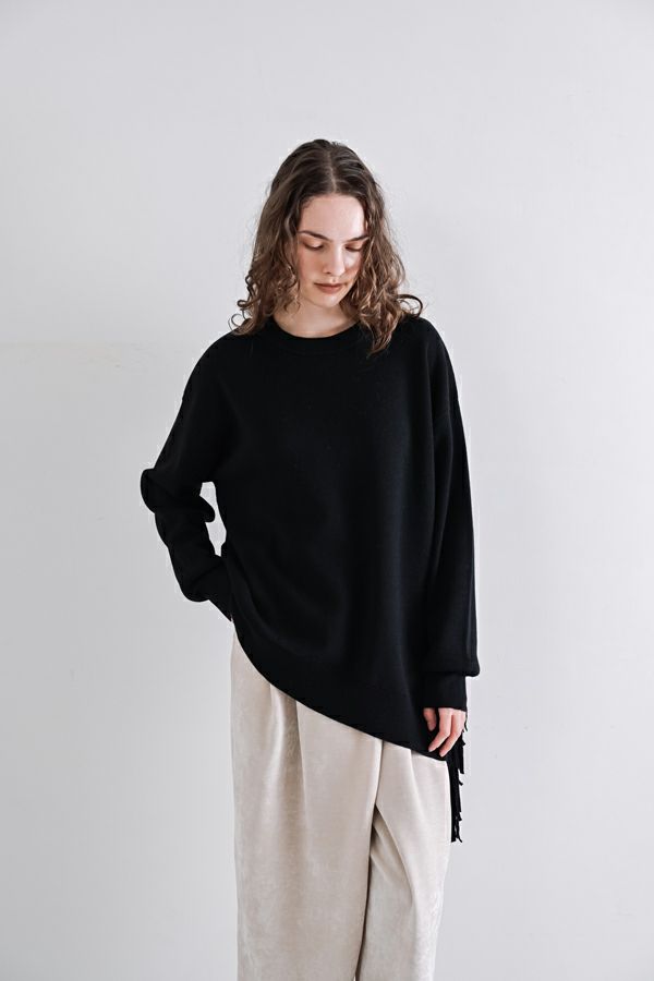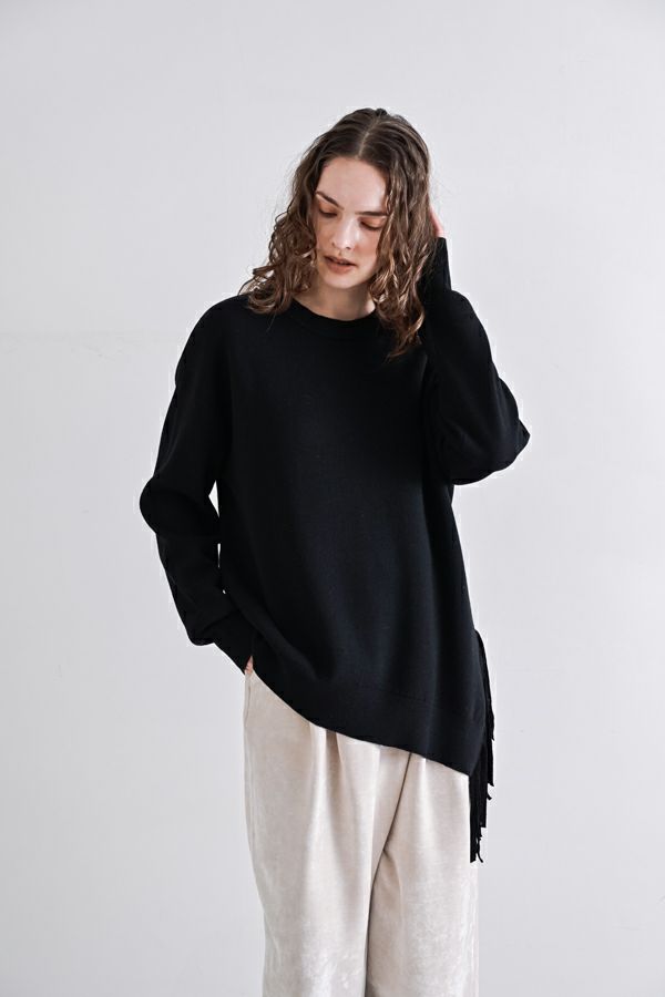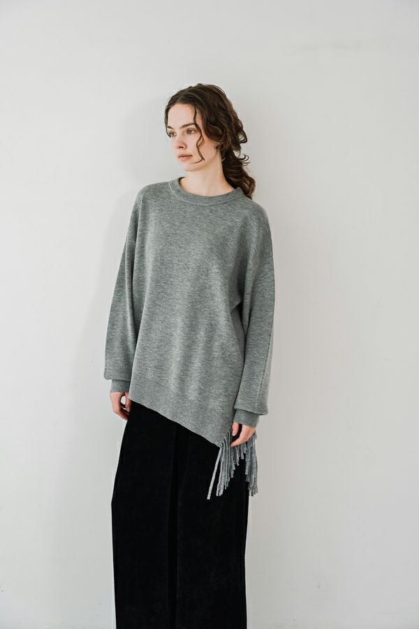 残りわずか!!各色1点のみ! 【お届け最短】アシメフリンジスムースプルオーバー