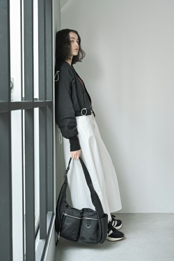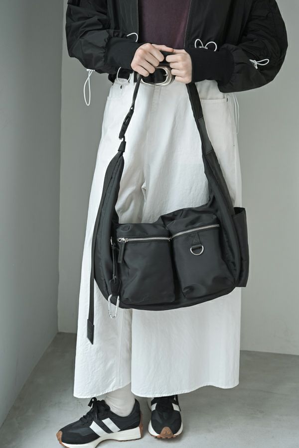 大容量・スタイリッシュ・機能性も抜かりなし、毎日使いたいショルダーBAG。 ユニセックスなデザインなのでご家族での兼用もおすすめです。 通勤、お出掛け、レジャーに、、 荷物が多い日でも安心の収納力が魅力の優秀アイテム。 フロントのポケットがエッジの効いたアクセントに。ショルダーベルトはあえて長めに垂らすことで「イマドキ」感を演出。ベルトの先にはロゴをあしらっています。 フロントのDカンやカナビラには、キーホルダーを付けたりオリジナルのカスタマイズが楽しめます。