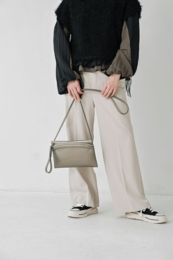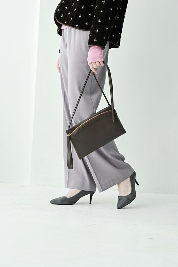洗練を纏う、大人のスマートクラッチBAG。 スリムなシルエットながら、お財布代わりにも使える収納力を備えた薄マチ仕様のクラッチバッグ。 背面にはスマートフォンが入るポケットを備え、見た目だけでなく機能性も抜群。 シヨルダーの長さも中側で調整ができ、スタイルやシーンに合わせて持ち方をアレンジできます。 フォーマルな装いにもカジュアルなコーデにも馴染み、毎日のスタイルを上品に引き締めてくれる、大人のためのスマートな一品です。