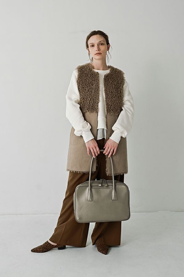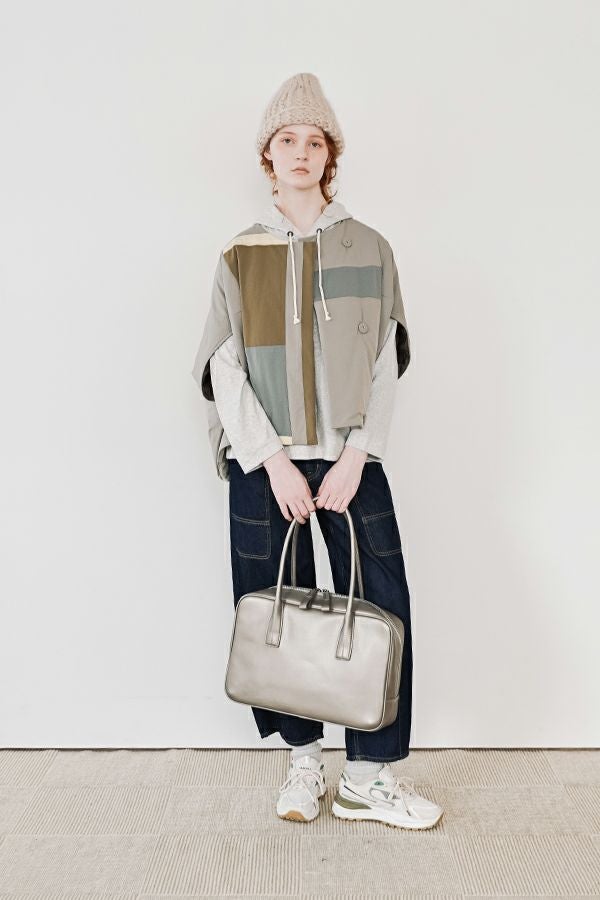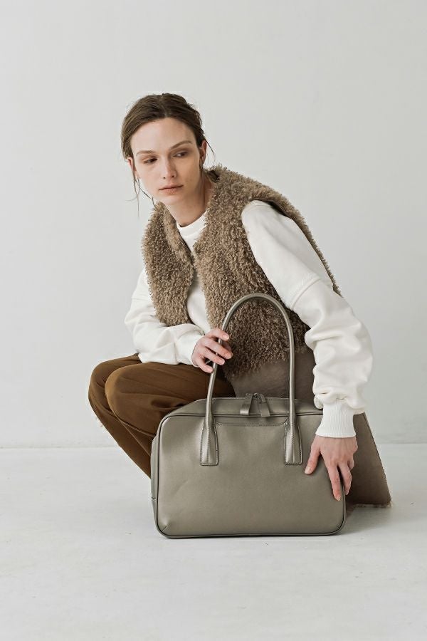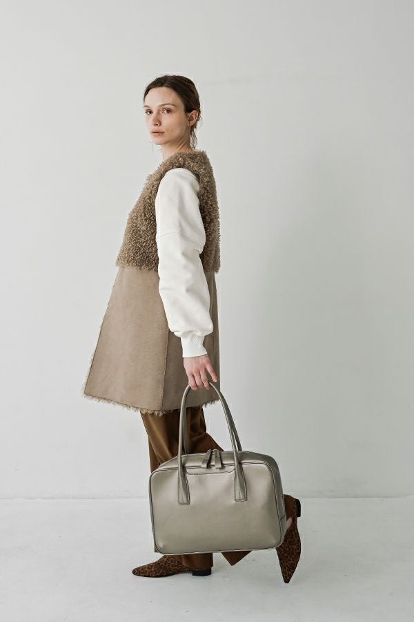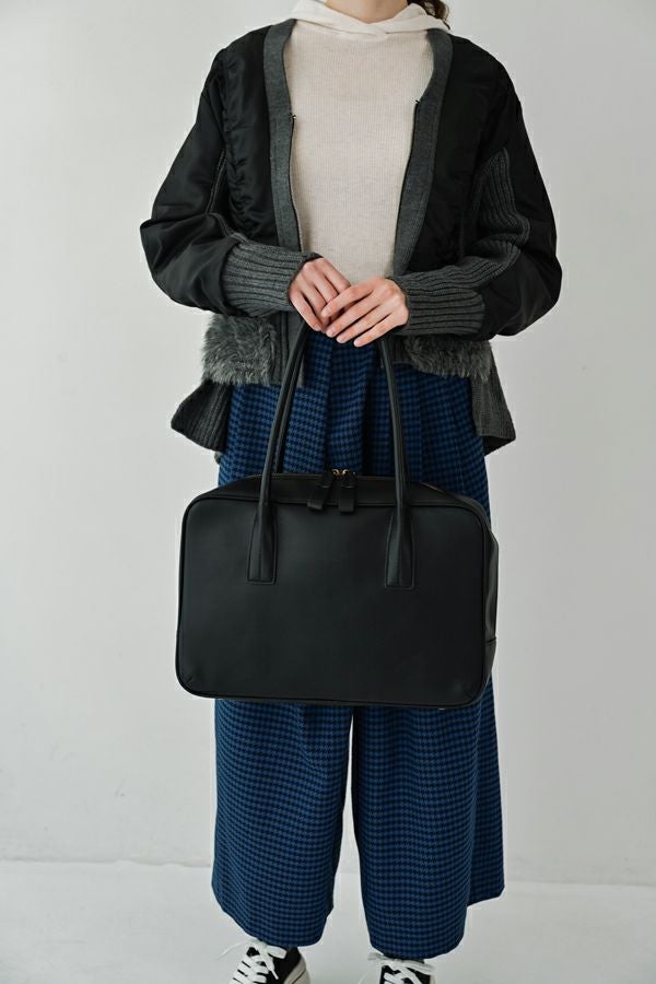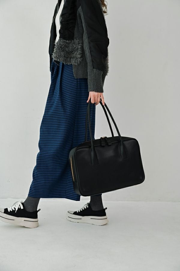 洗練を極めた、モードな佇まいのスクエアーボストンBAG。 シンプルながらも美しく計算されたフォルムが際立つ、上品なスクエアシルエット。引手と持ち手にはモードなエッセンスを効かせ、毎日のスタイルに品格を添えてくれます。しっかりと手にフィットするハンドルで持ちやすさも抜群。 外側にはスマホやパスケースがさっと入れられるポケット付きで、実用性にも優れています。A4ファイルも収納できるゆとりあるサイズ感で、通勤から休日まで幅広いシーンで活躍する、頼れる大人のための万能BAGです。