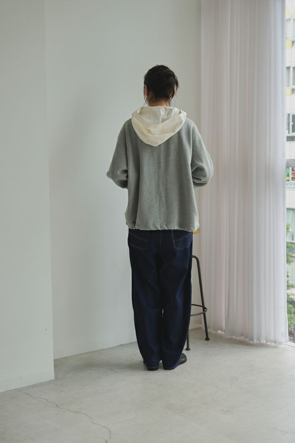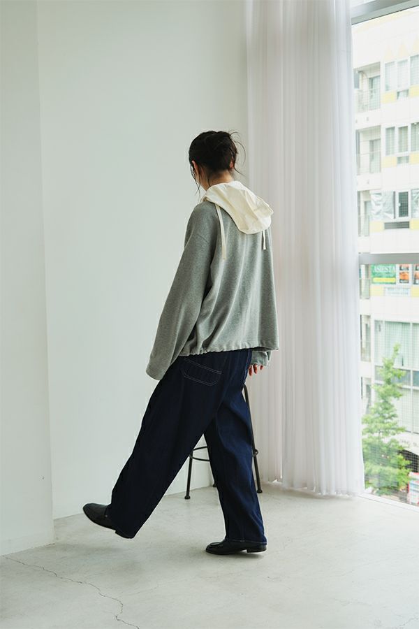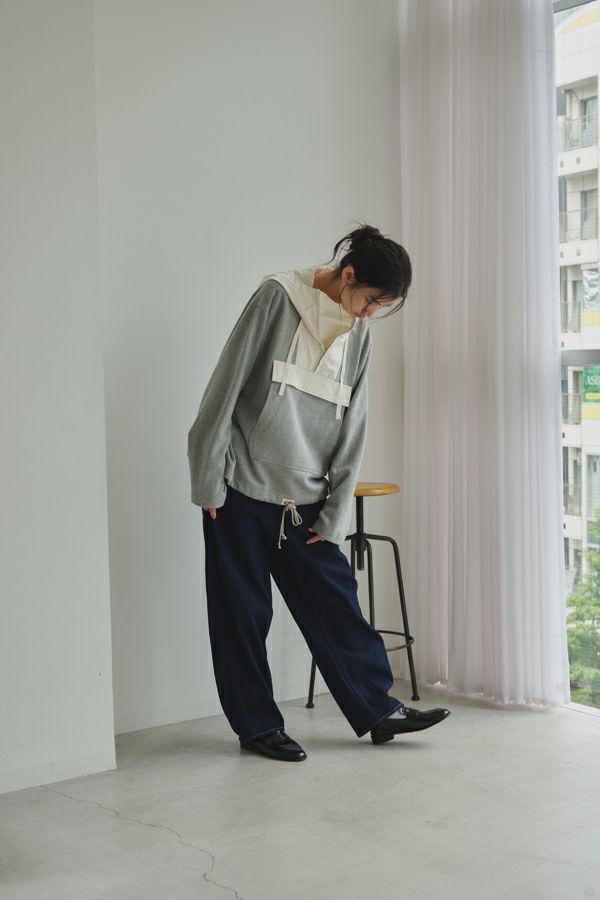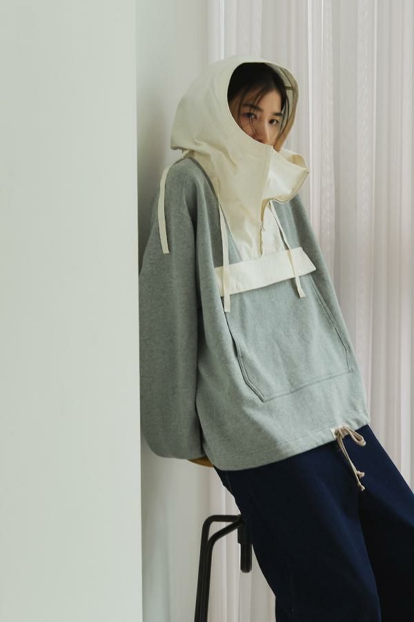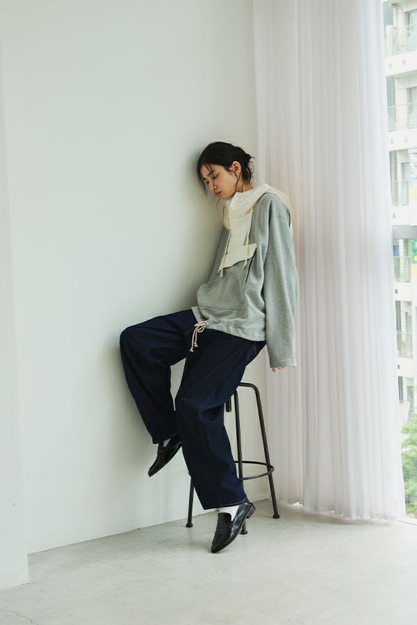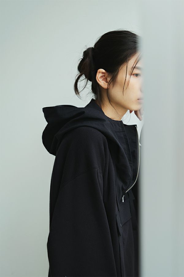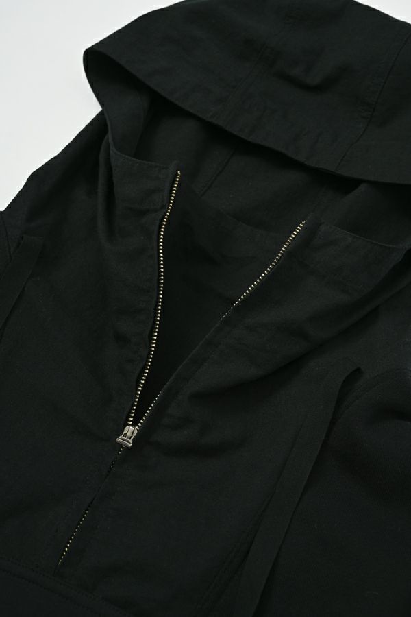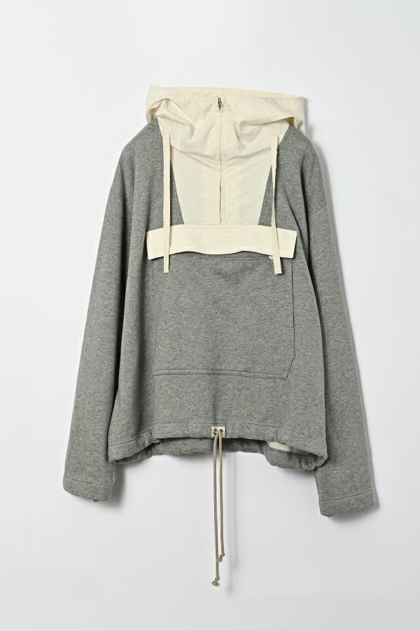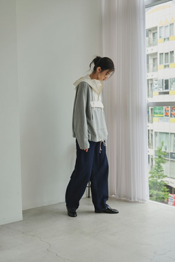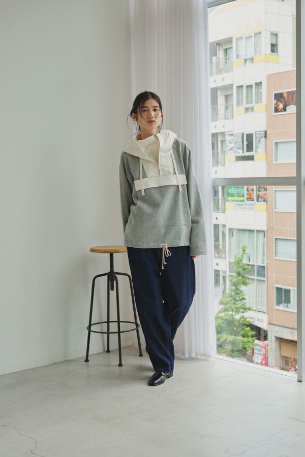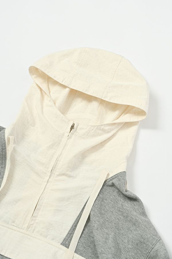 軽やかに、あたたかく。ディテールで差がつくスノーパーカー。 スノーパーカーをベースに、現代的なミニマルデザインへと落とし込んだ一着。ミリタリー由来のディテールを活かしながらも、日常に馴染むすっきりとしたバランスで仕上げています。 素材は、ふくらみと柔らかさを兼ね備えたHEAVY裏毛。タオルのようなパイル編みに裏起毛をかけ、さらにタンブラー加工を施すことで、見た目の厚み以上に軽く、あたたかな着心地に。裏毛ならではのラフな表情が、気負わず着れる雰囲気を演出します。 フードまわりには綿麻のリップストップ生地を使い、軽量ながらハリ感のある仕上がりに。マチ付きでフードが垂れない構造、フード脇のテープは寒さ対策で首ぐりのサイズ調整や、ガスマスクのコードを縛るため、などかつての防寒着に備えられた実用的ディテールも健在です。 裾のドローコードや袖口のドットボタンなど、細部に宿る機能美が、スタイルに奥行きを与えてくれます。メンズライクな空気感を纏いながら、あくまで軽やかに。寒さに備えながら、気分はスマートに決まるアイテムです。 ●日本製