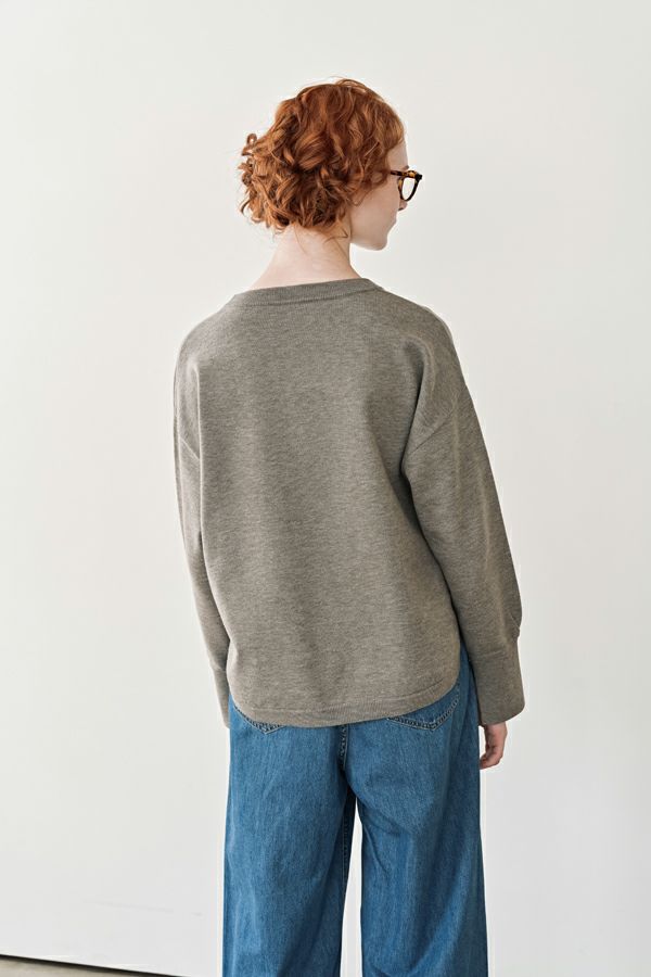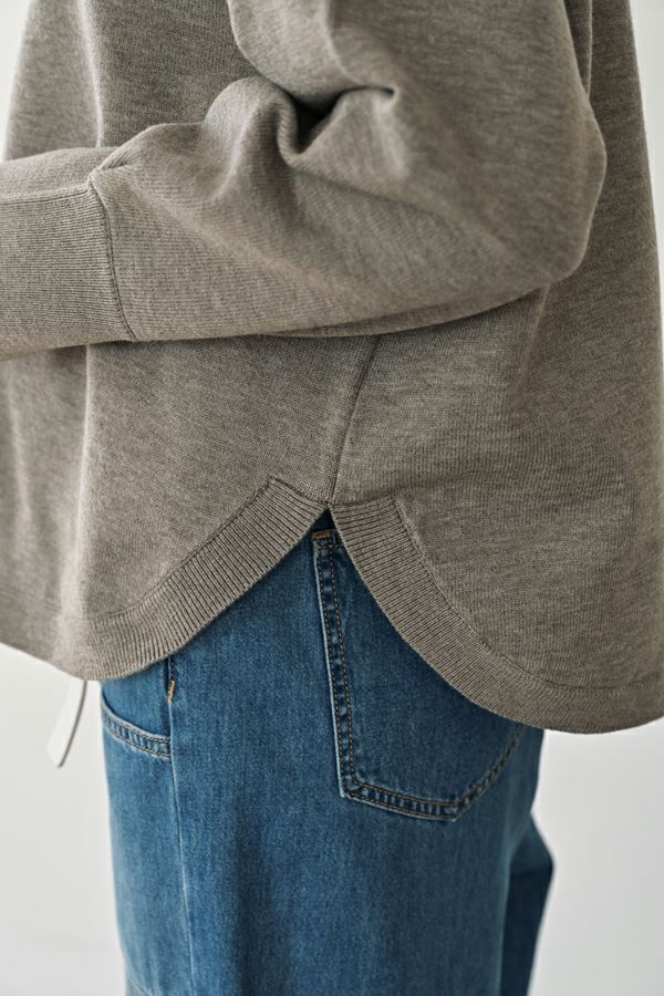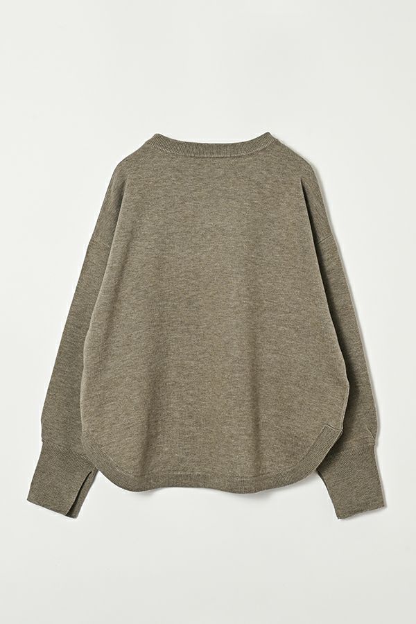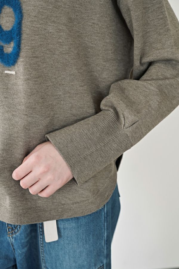 遊び心と上品さを一枚に。大人を惹き立てる主役ニット。 表情豊かなフェザーヤーンでカジュアルなロゴ使いがアクセントに。身頃本体はしっかりめのハイゲージニットでスッキリさせて品良くきれいめ印象をプラス。 着膨れせず程よくゆとりのあるサイジングに計算された女性らしいラウンド裾がシルエット美しく、シンプルに着るだけでスタイリングを格上げしてくれます。一枚着でもサマになる万能ニットです。 絶妙な丈感がボトムを選ばずにコーディネートしやすく、ラウンドした裾が腰周りに程よくゆとりがあるのでシャツをレイヤードしても素敵なスタイリングに決まります。