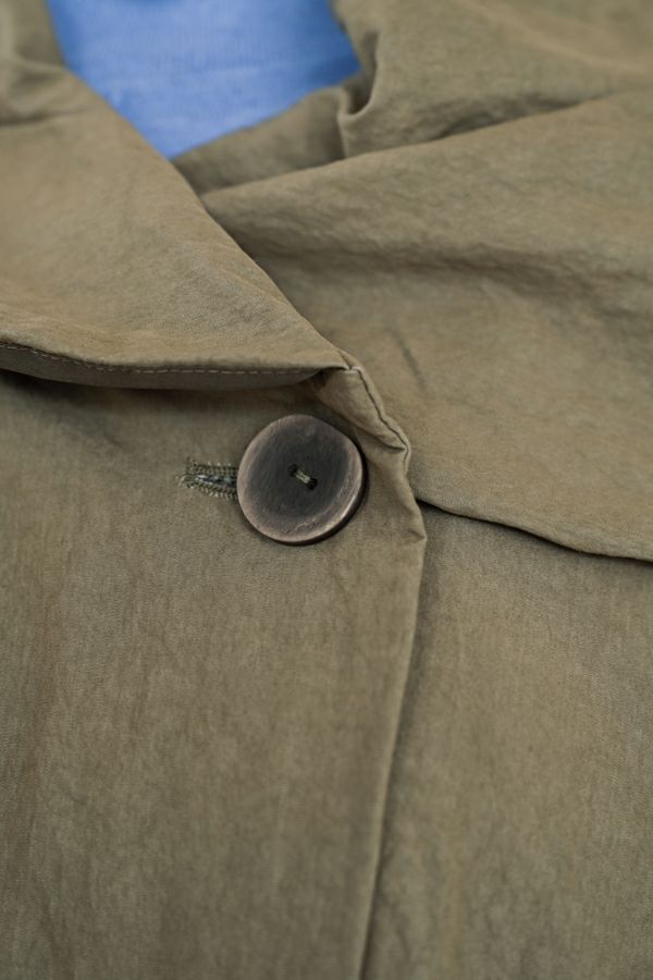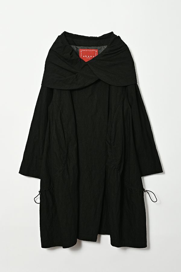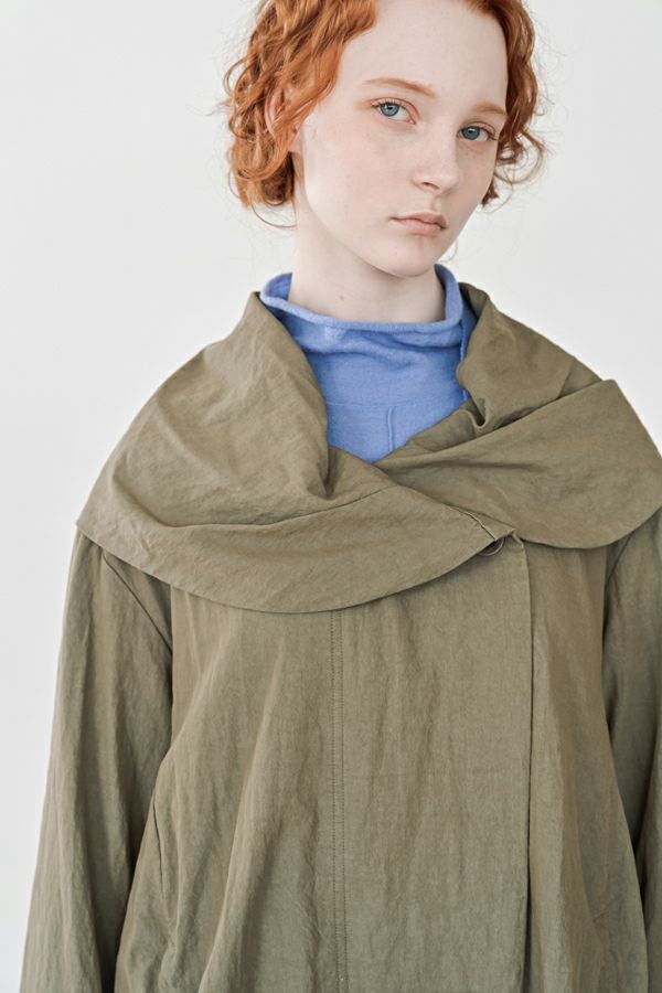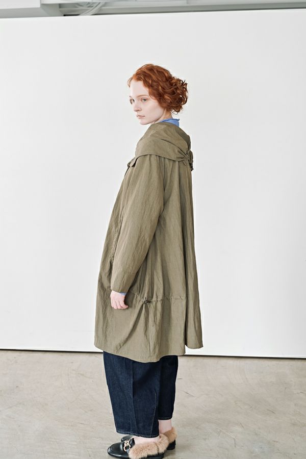 軽やかさと温もりを纏って、大人の装いを洗練するコート。 人気のコートがディテールを洗練させて再登場。なめらかな落ち感のあるレーヨンに、ほどよい張り感を加えたナイロン混素材を使用し、大人のカジュアルスタイルに奥行きを与える一着に仕上げました。 ゆったりとしたフォルムに、さりげなく漂うモードな空気感。斜めに施されたシャーリングは、シルエットの変化を楽しめるアクセントに。長すぎない着丈がバランス良く、スカートにもパンツにも好相性です。 ふんわりと包み込むような大きな衿が、カジュアルな中にさりげないフェミニンさを添え、防寒性も兼ね備えています。ストールを重ねてももたつかず、程よい厚みでロングシーズン活躍。 日常にモードなエッセンスを纏いたい、感度の高い大人にぴったりの一着です。