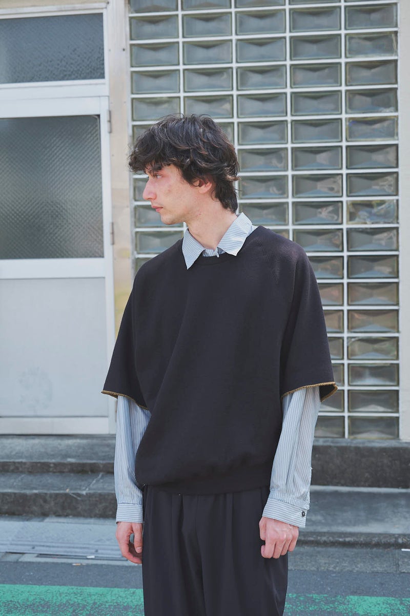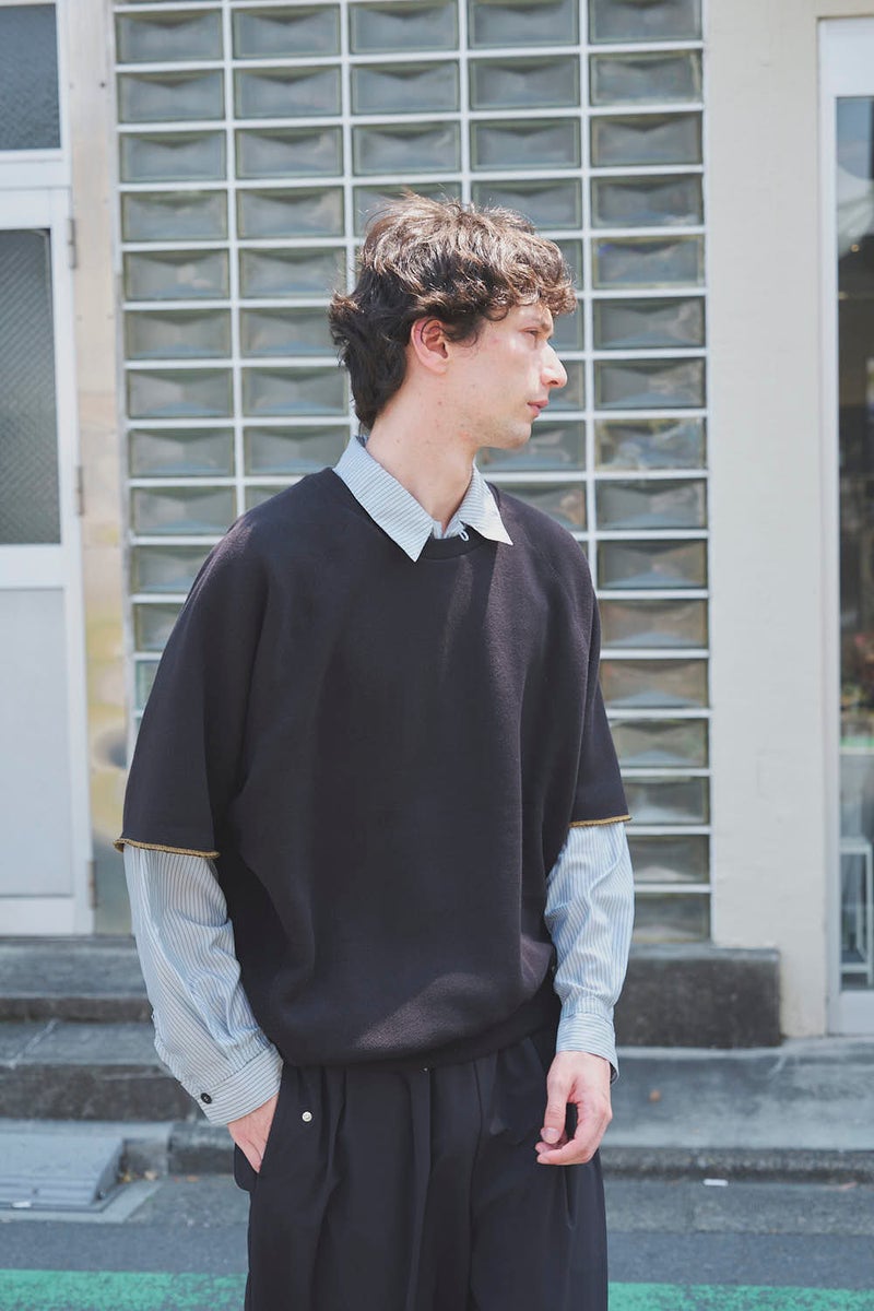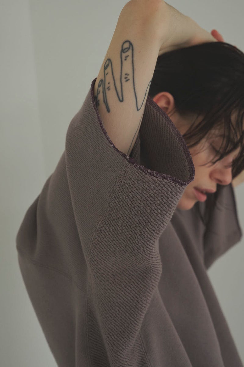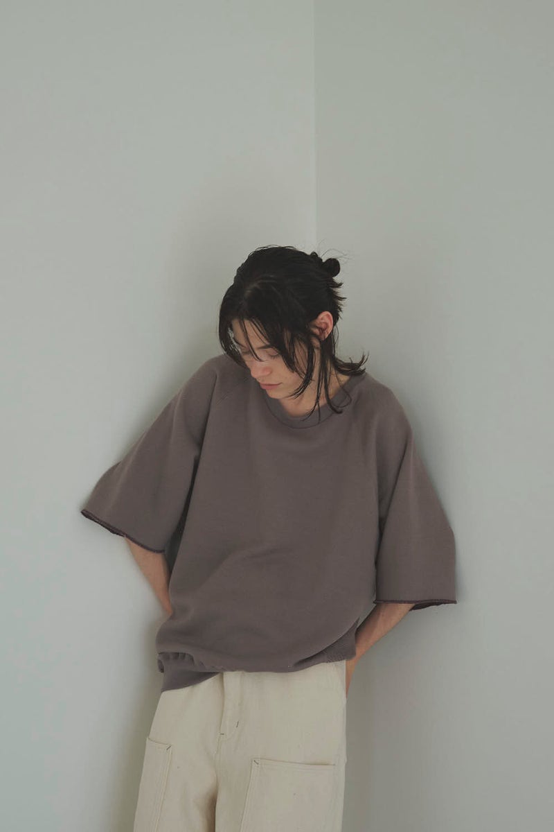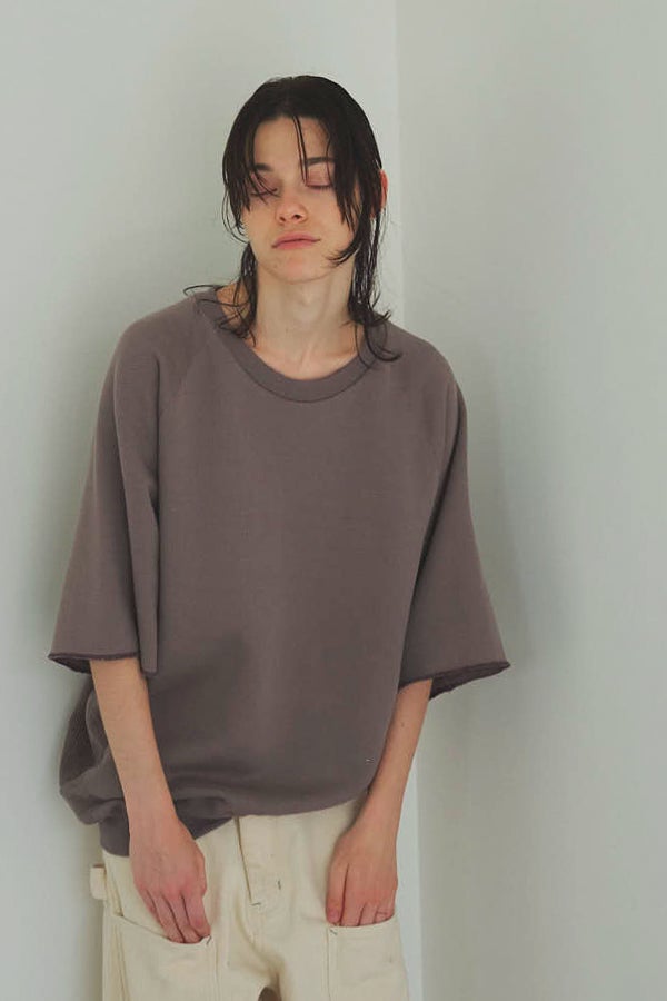 凹凸のある裏毛で魅せる、独特シルエットのハーフスリーブスウェット。