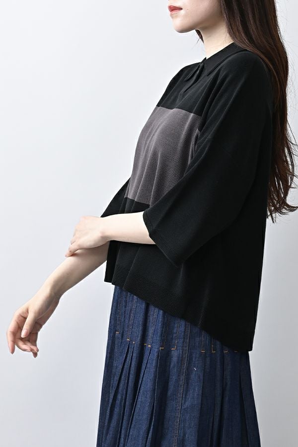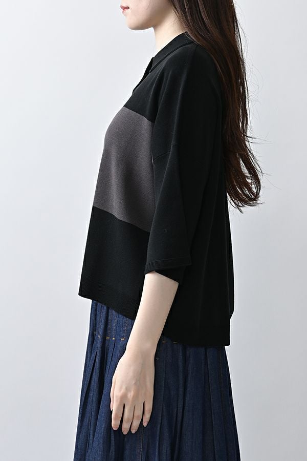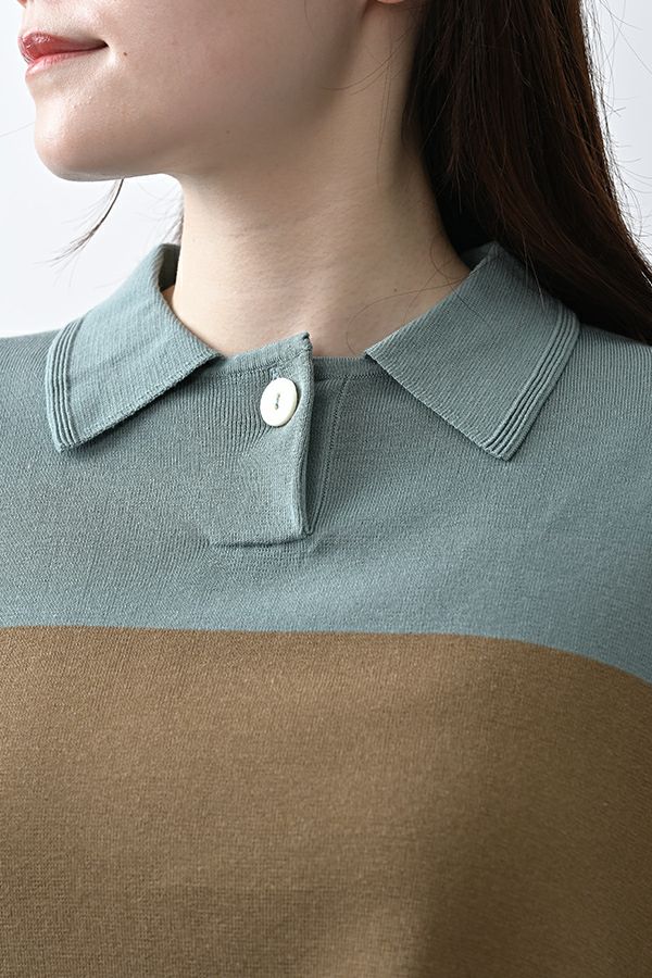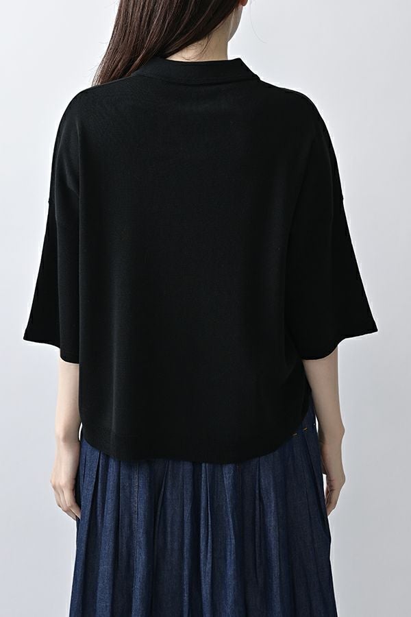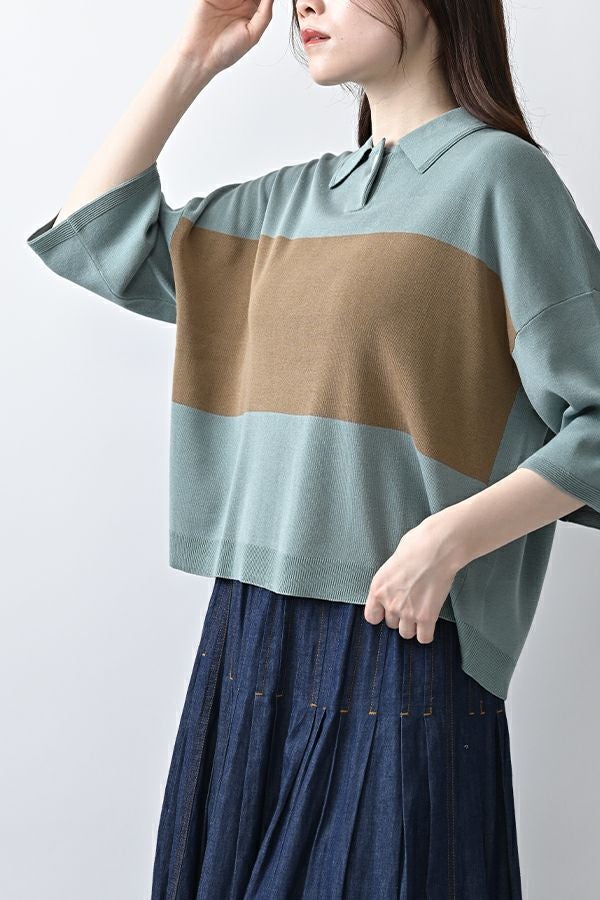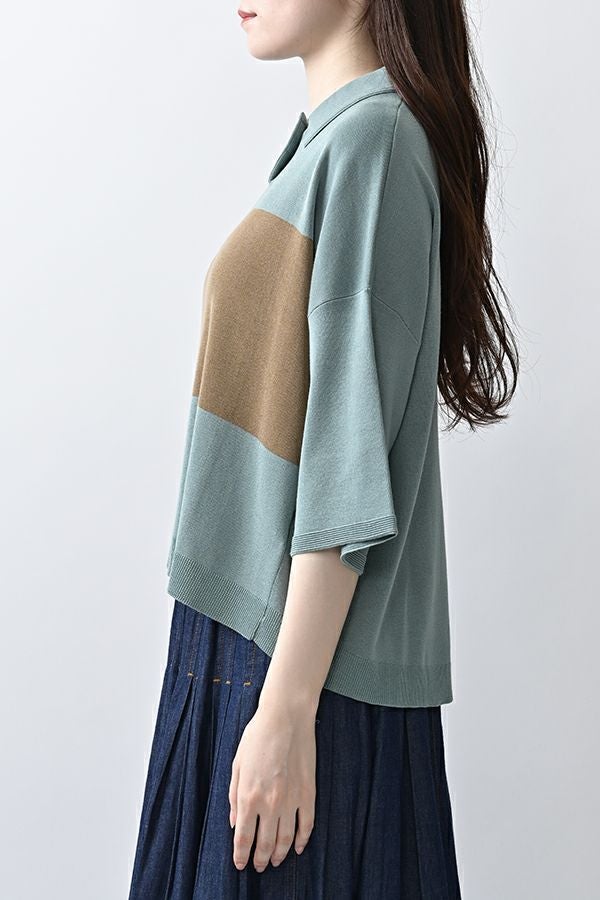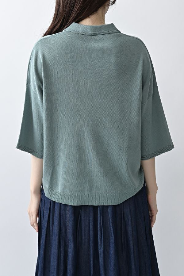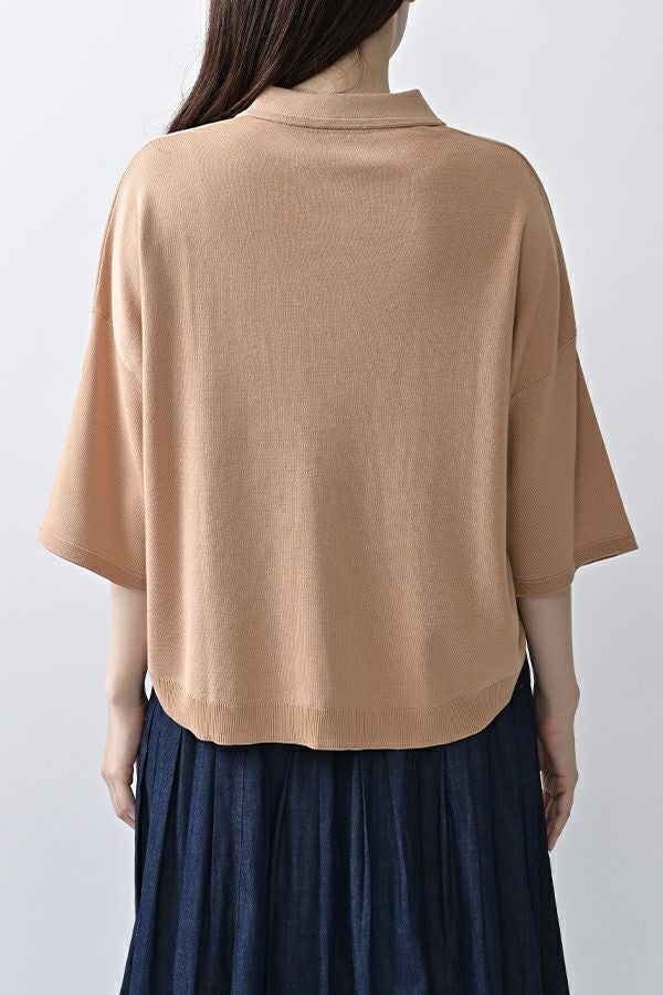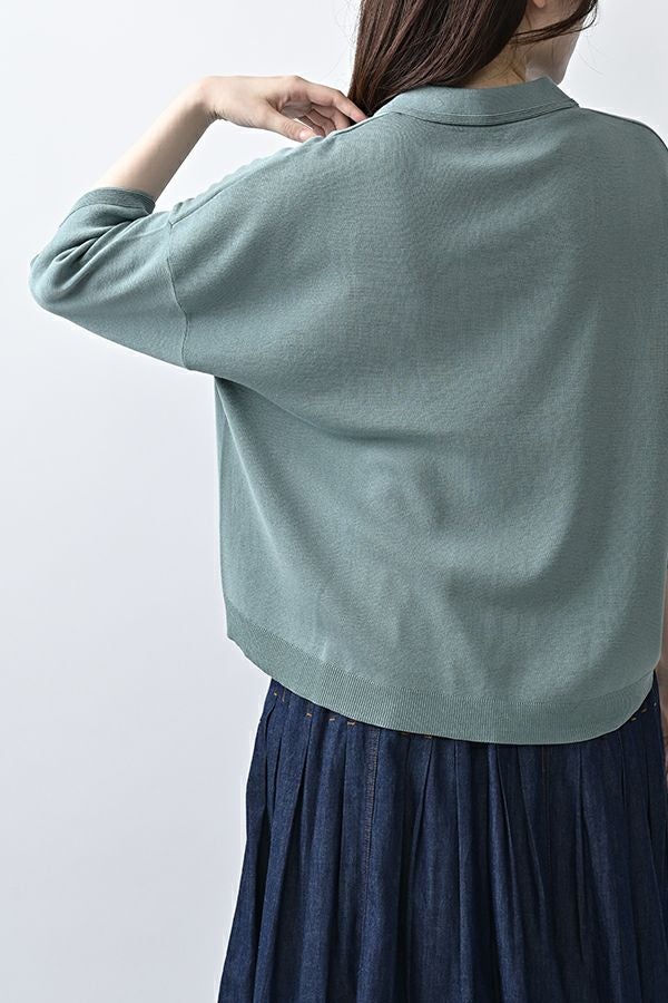 光沢ととろみで魅せる、シャツ襟ニットプルオーバー。 コットンのドライタッチにアセテートのしなやかな光沢を加え、とろみ感の肌当たりはうっとりする着心地の一着。総針編みの美しいシルエットに、きちんと感の漂うシャツ襟をあしらいながらも、オーバーサイズでリラクシーな着心地を実現しました。 コンパクトな丈は女性らしい雰囲気が漂い、胸もとのバイカラーアクセントは、ウエストより上に視線を誘導し、スタイリッシュな印象をプラス。サッと着るだけでビジネスシーンにも映え、きちん感のあるニットです。 リラクシーな着用感のトップスは、ジャストウエストのスラックスやハイウエストタイトスカートと合わせることで、こなれ感ある大人の着こなしに。 上質素材と計算されたデザインが、日常のスタイリングに洗練された雰囲気をもたらします。