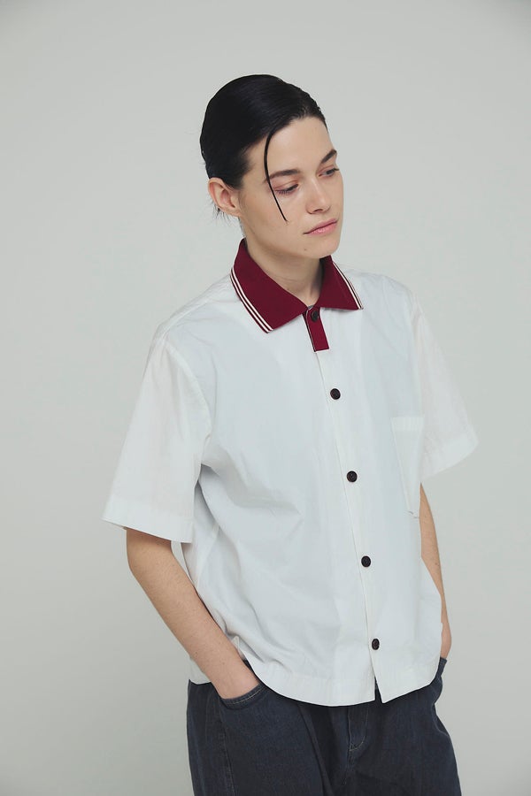 配色ニット襟で遊ぶ、大人のショート丈ポロシャツ。